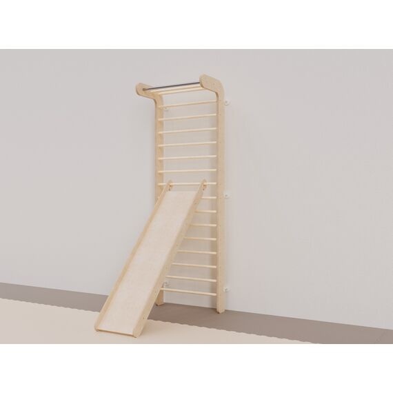 Это один из снарядов, которые используются с раннего возраста: уже годовалых детей с поддержкой учат ходить вверх и вниз по наклонной доске, приподнятой на 10-20 см. Предварительным шагом является обучение движениям на ограниченной поверхности: доску располагают на полу, чтобы ребенок по ней ходил и ползал. Для этого ставят на другой край доски привлекательный для ребенка предмет.