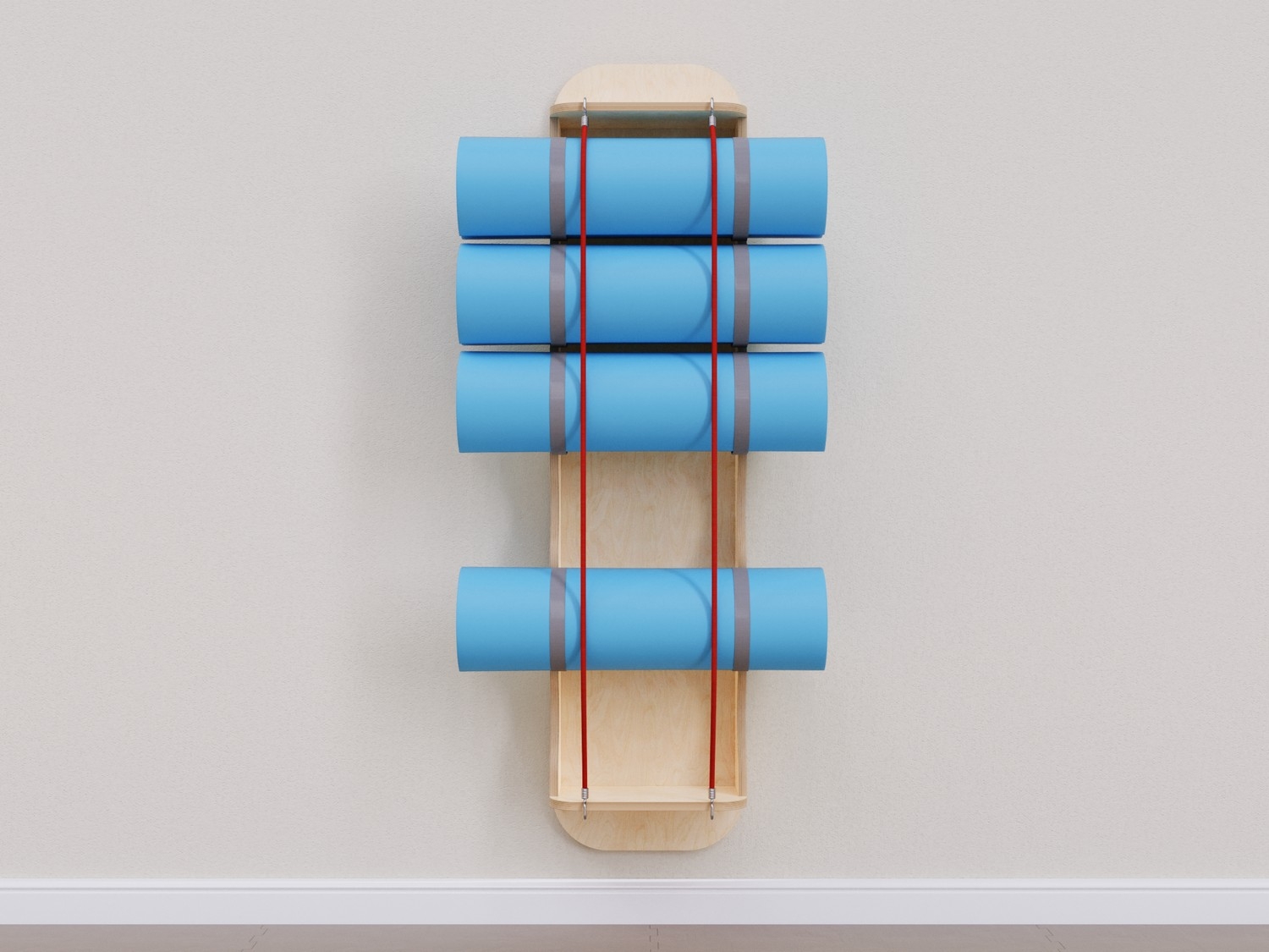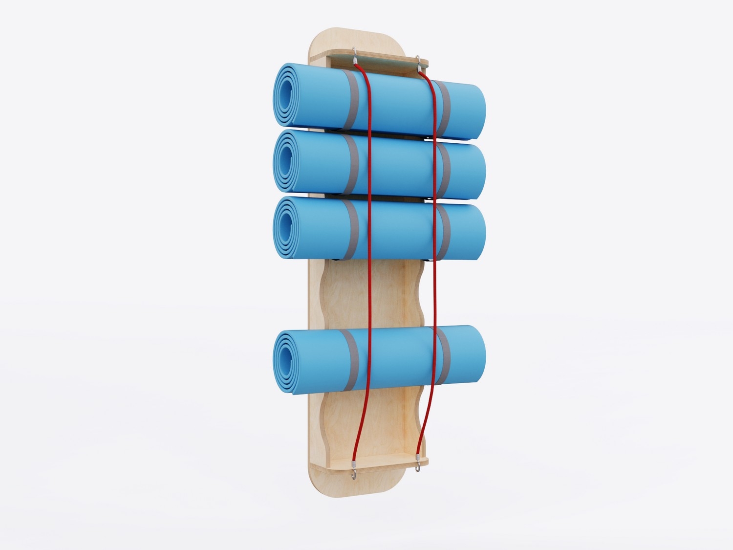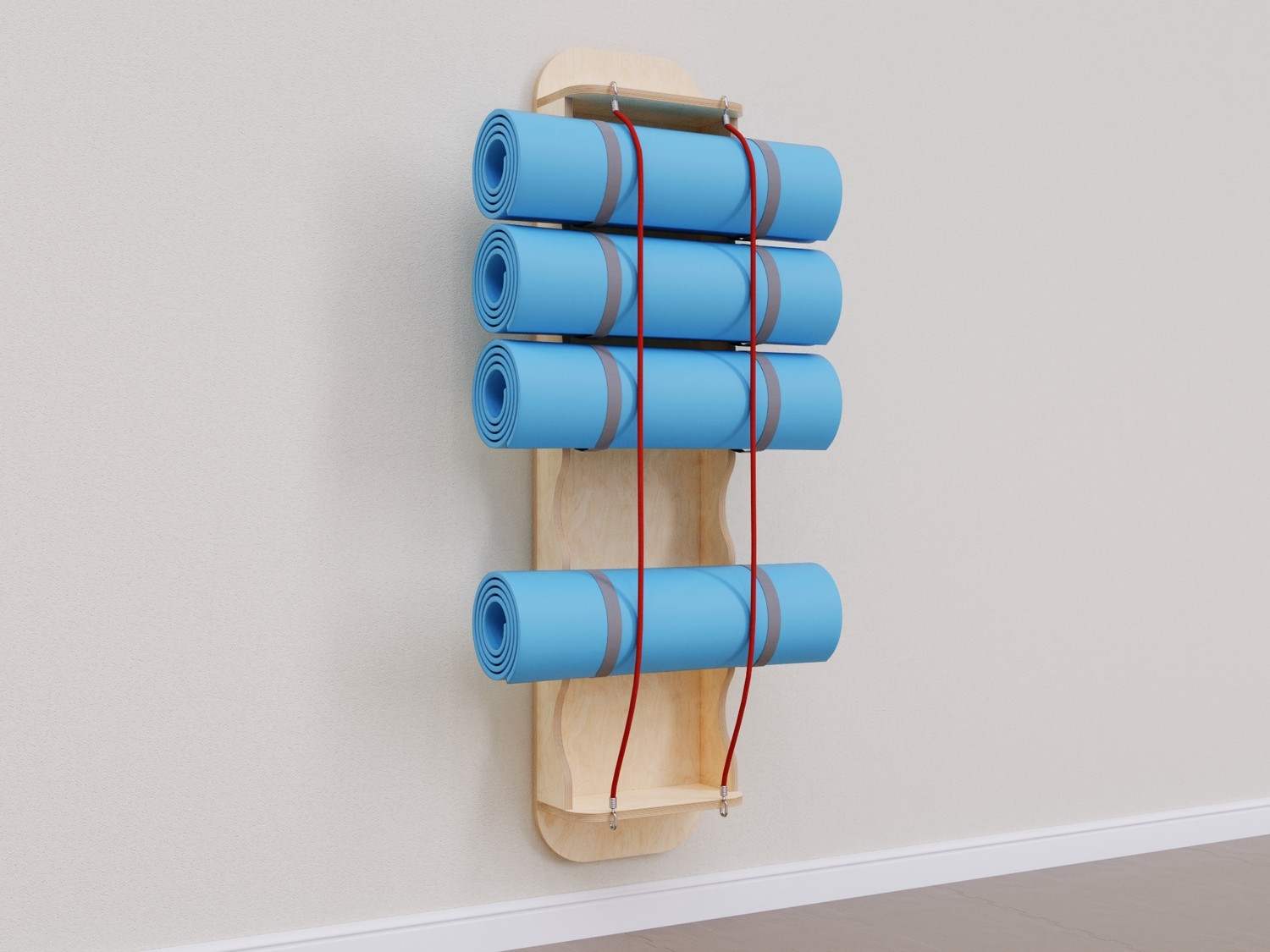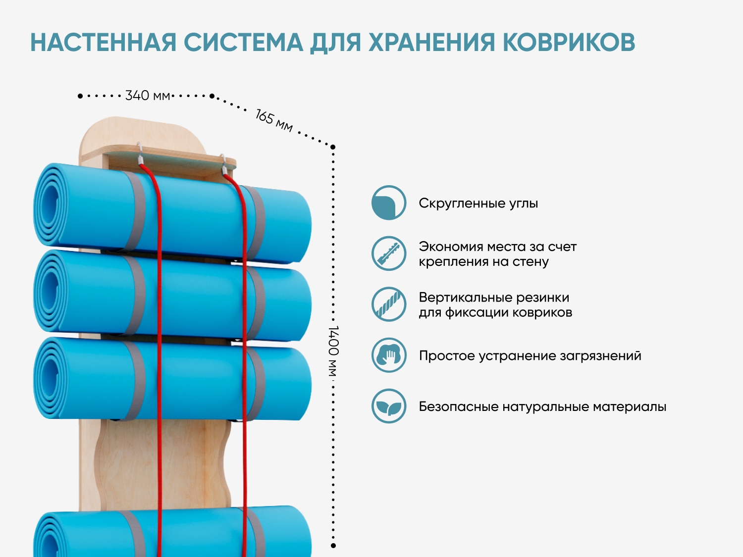 Система для хранения гимнастических ковриков. Экономит место в физкультурном зале, расширяет рабочее пространство на полу за счет крепления к стене. Вертикальные резинки позволяют с легкостью доставать коврики и убирать их обратно.