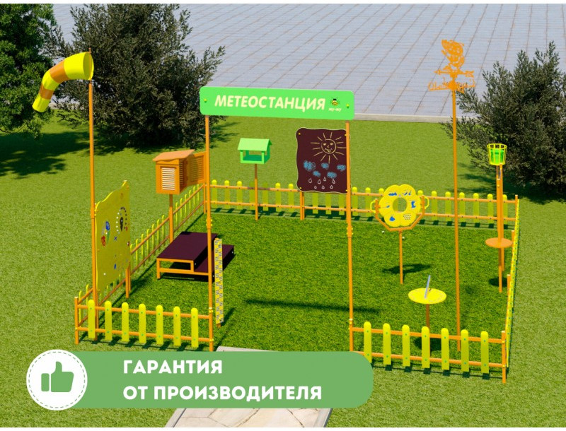 12. Ограждение - отделяет территорию метеоплощадки, с ним метеоплощадка выглядит ещё привлекательнее! Ограждение изготовлено безопасно для детей: отсутствуют острые углы, на крепежных деталях встроены яркие заглушки.