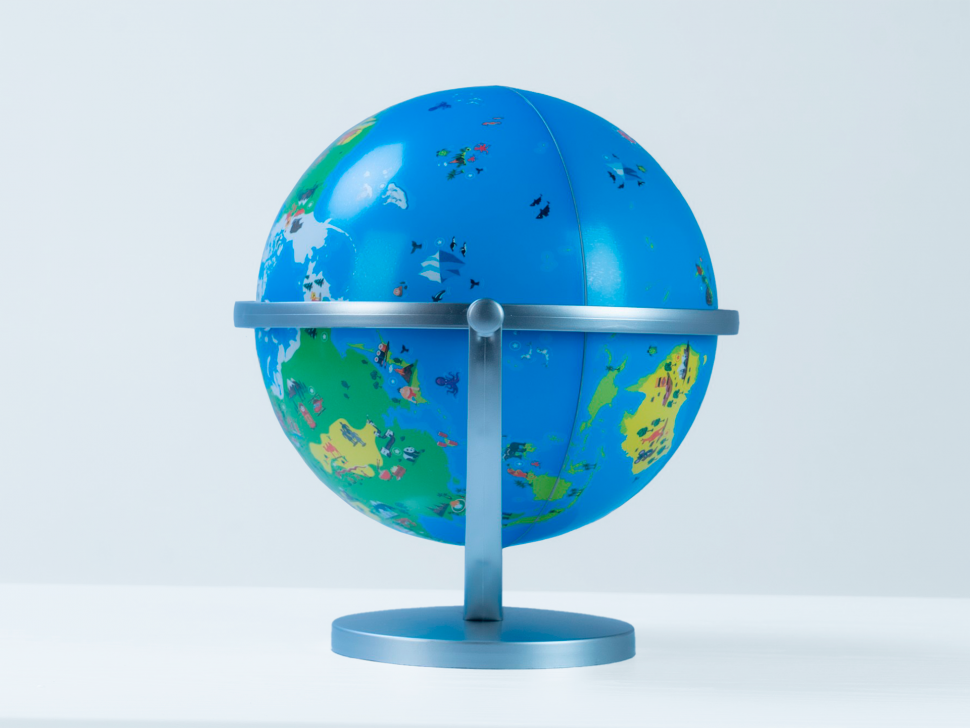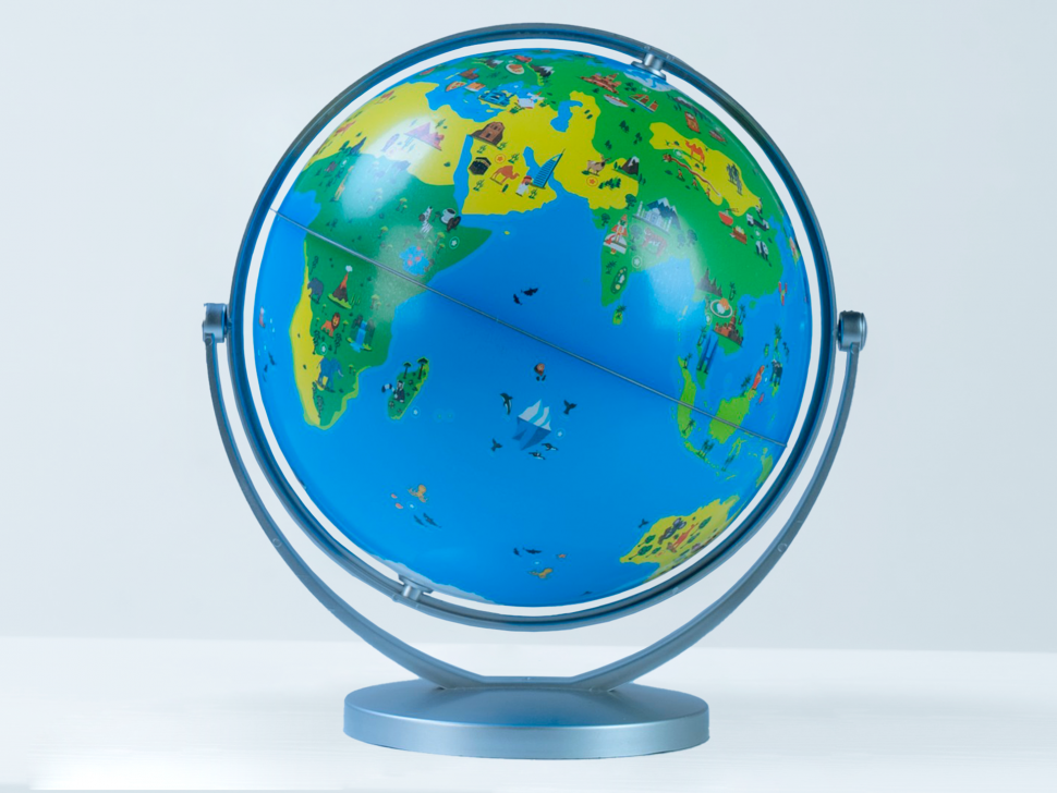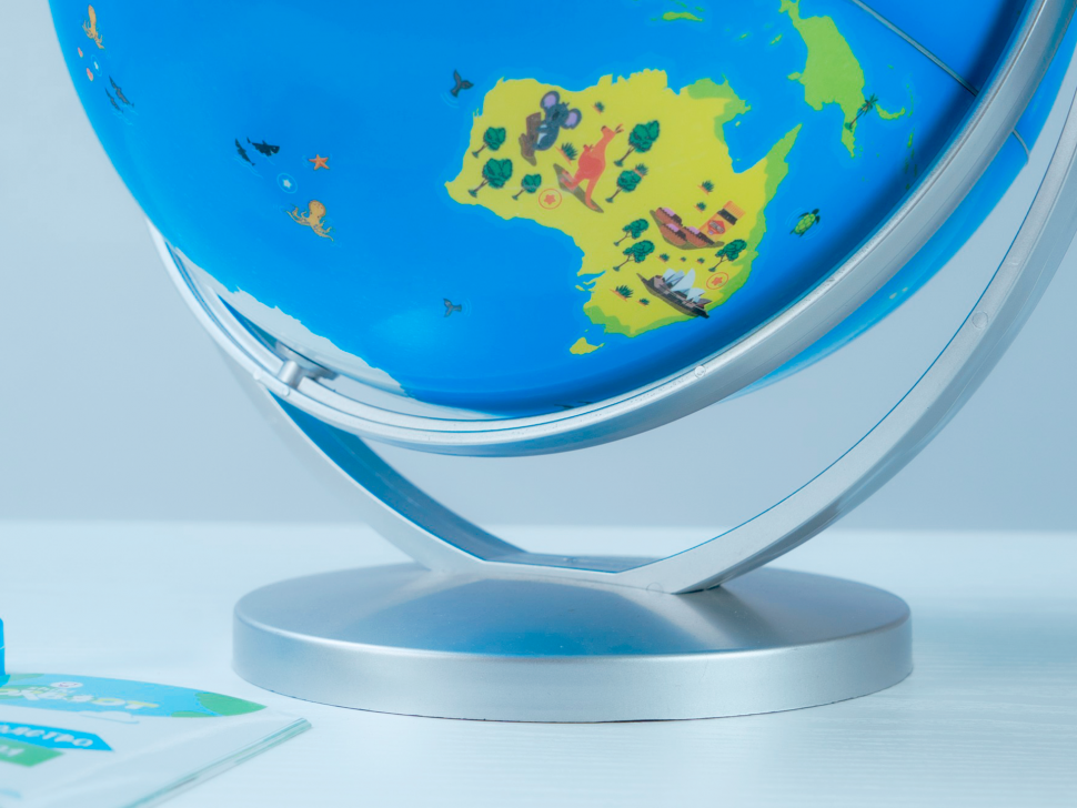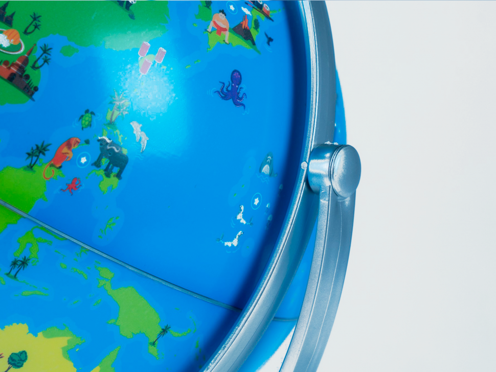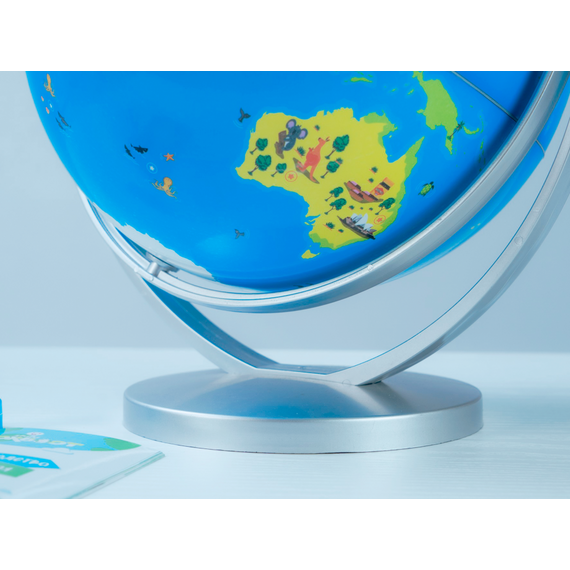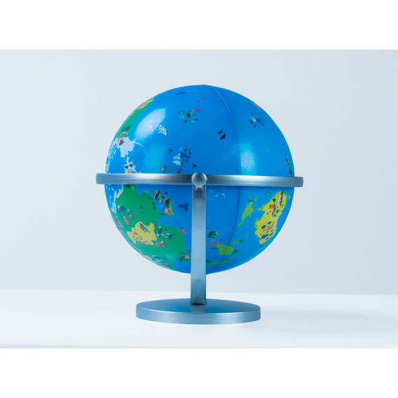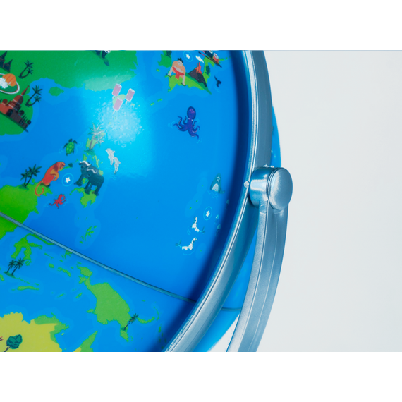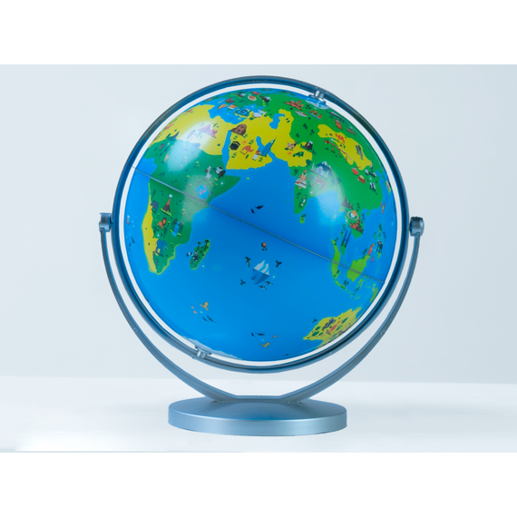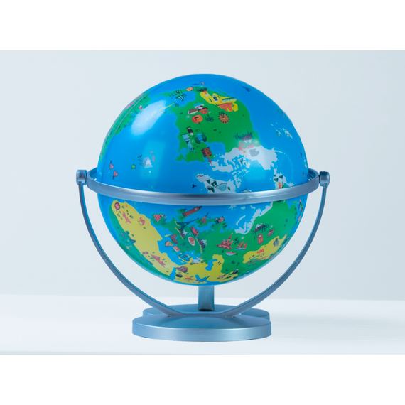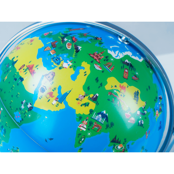 Это современная и умная версия глобуса, дополненная 3D объектами, которые ребенок сможет увидеть, направив на него камеру умного устройства.