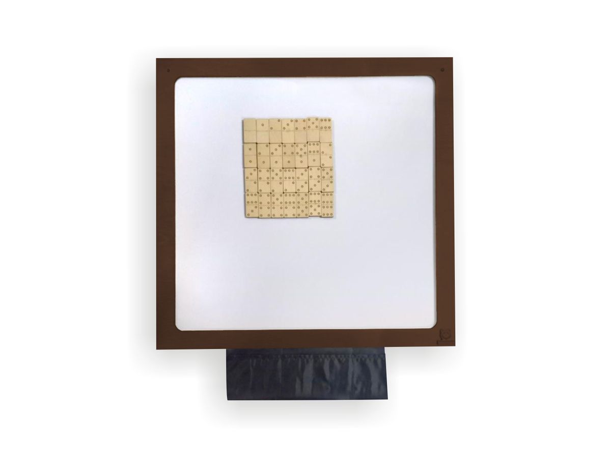 Новый вариант игры "Домино" представлен в виде магнитной доски для размещения на стене. Такое расположение экономит место, позволяет играть без использования стола и стимулирует интерес к игре, так как она всегда на виду у детей.