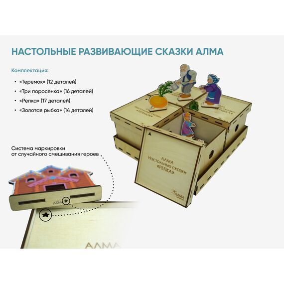 Настольный театр от компании «АЛМА», который не только развлекает, но и способствует развитию памяти, внимания и концентрации у детей, а также знакомит с сюжетами всемирно известных сказок.