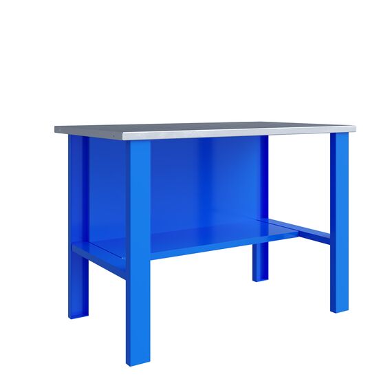 ВхШхГ - 855х1196х696 мм, вес - 38 кг, материал столешницы - фанера + оцинк. металл, цвет - синий, серый