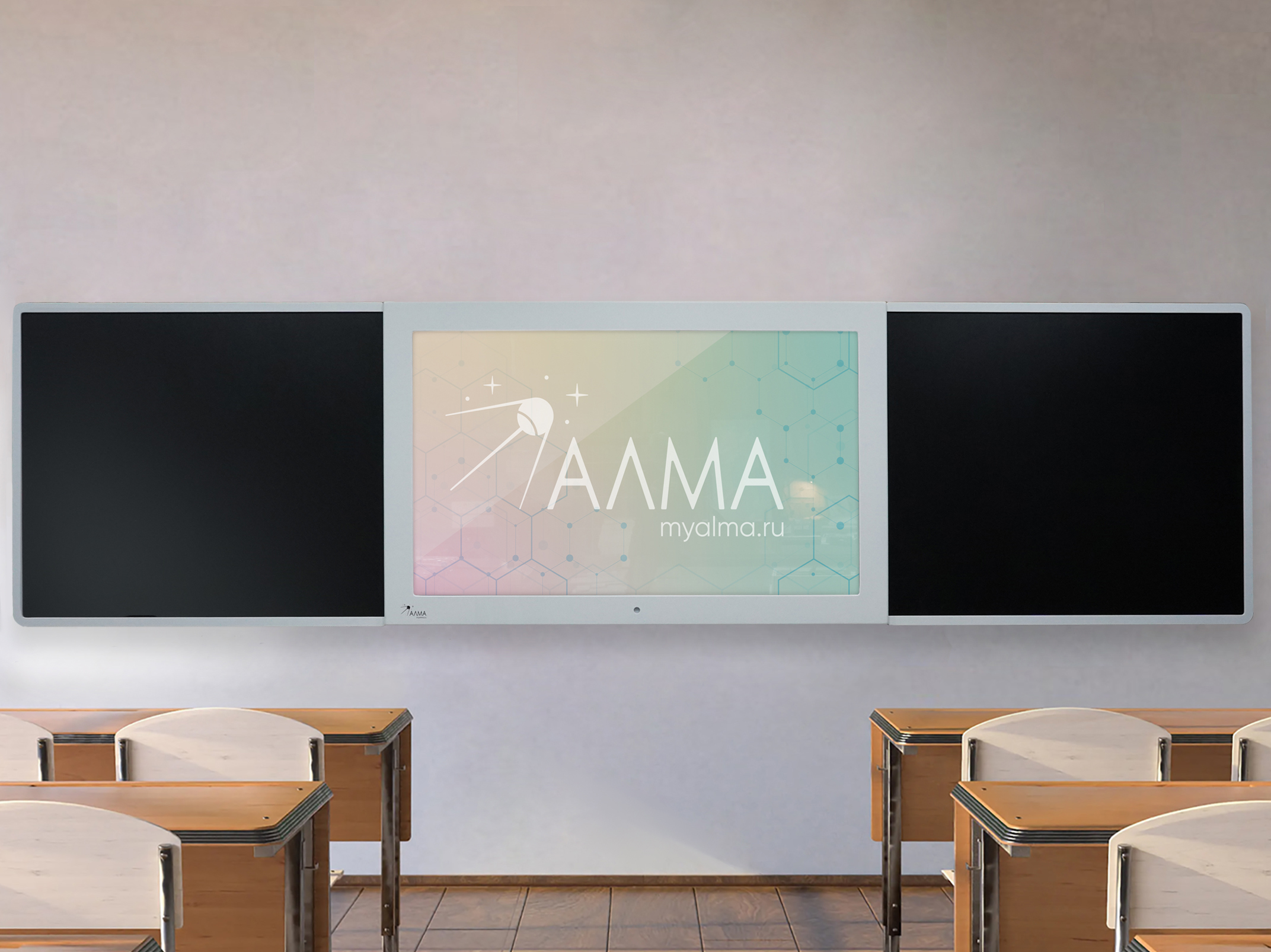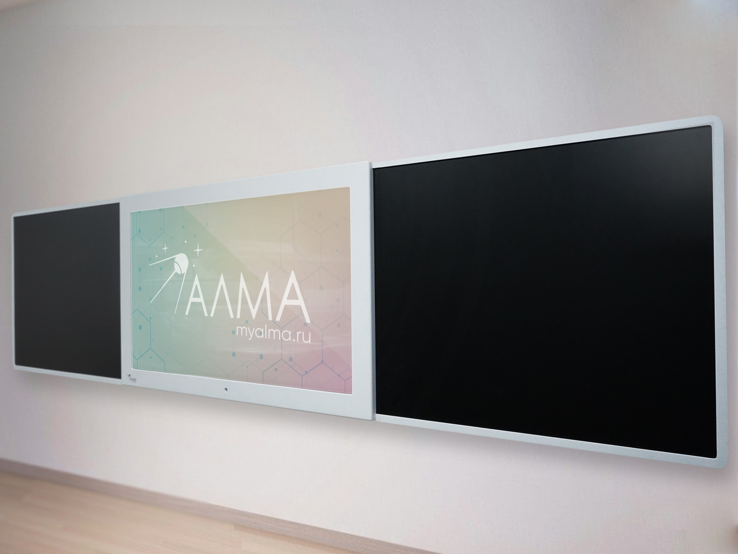 Современная школьная доска, объединяющая инновационные технологии и традиционные инструменты преподавания. В центре интерактивная сенсорная панель с multi-touch (до 10 одновременных касаний), по бокам - пишущая магнитно-меловая поверхность. Подходит для оснащения школ, учреждений культуры, детских кружков, развивающих и коррекционных центров для детей.