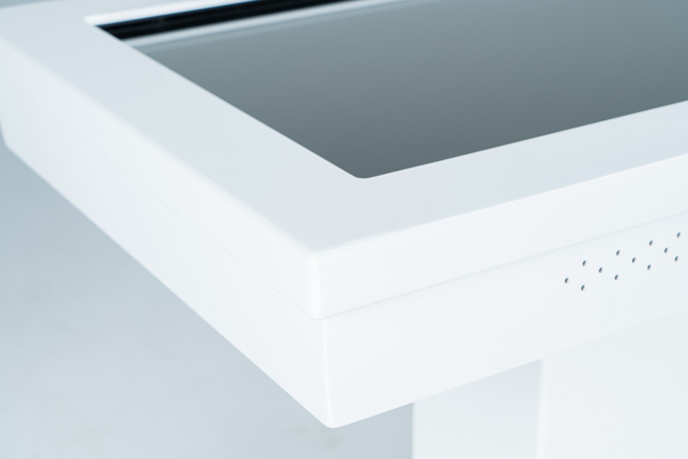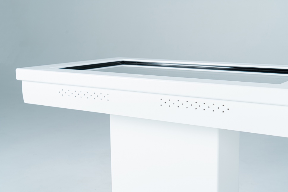 Интерактивный стол производится в фирменных цветах: молочно-белый, черный, космический синий, фисташковый.