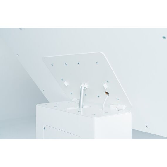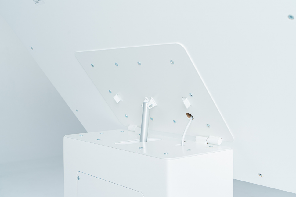 Интерактивный стол производится в фирменных цветах: молочно-белый, черный, космический синий, фисташковый.