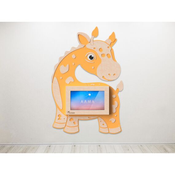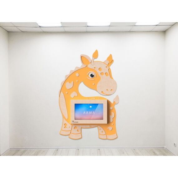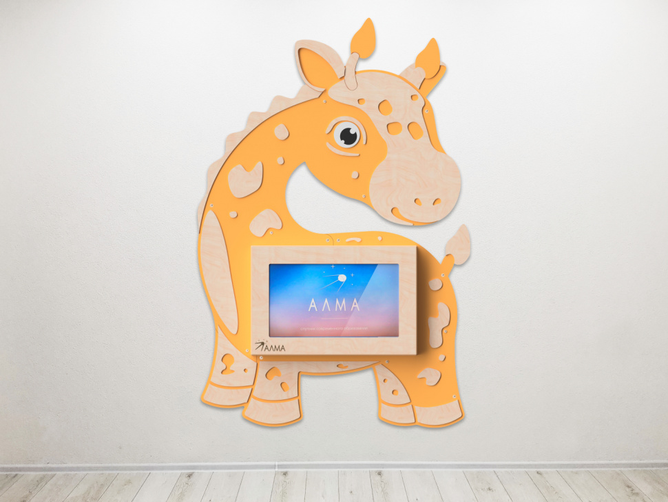 Настенная панель «Жираф» со встроенной интерактивной сенсорной панелью 32 дюйма. Это одновременно декоративное оформление стен и развивающая игрушка, ведь на панели установлен пакет игрового и обучающего ПО от АЛМА.