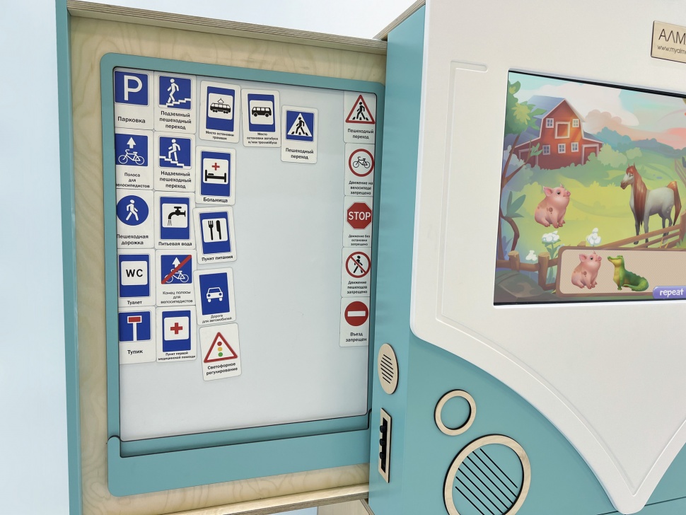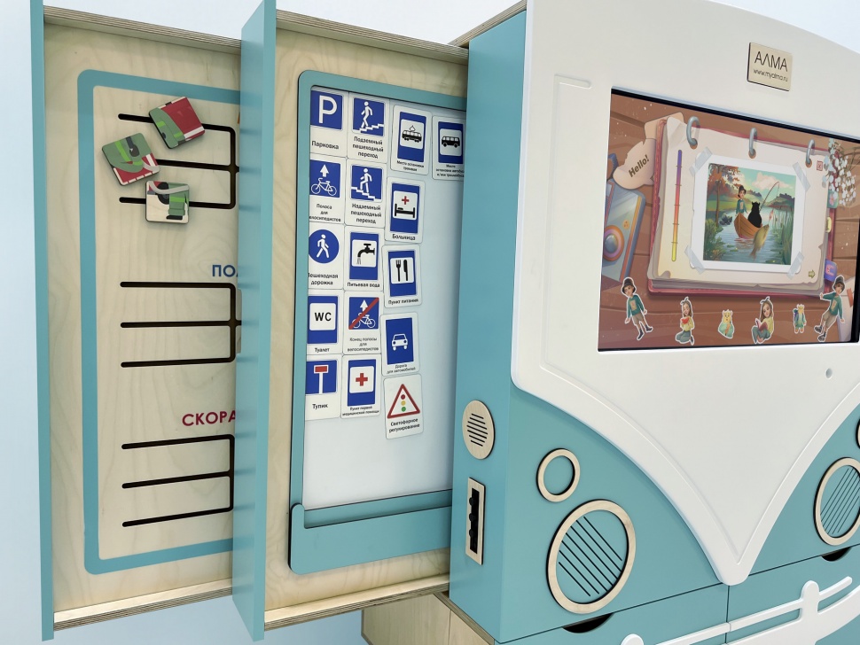 Методический интерактивный комплекс «АЛМИК» состоит из передней панели с мультимедийным монитором и четырёх выдвижных модулей по бокам. Выполнен в дизайне «Автобус». Главная тематика «АЛМИК» — изучение правил дорожного движения.
