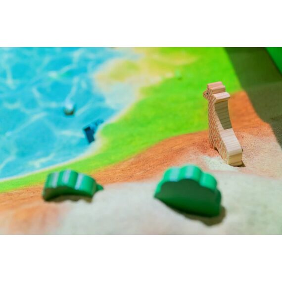 Это развивающий комплекс, который объединяет в себе возможности интерактивной песочницы и сенсорного стола. Технология дополненной реальности превращает обычный песок в земную поверхность с озёрами и горами, вулканами и долинами. Дополнительные панели позволяют проводить занятия в режиме сенсорного стола.