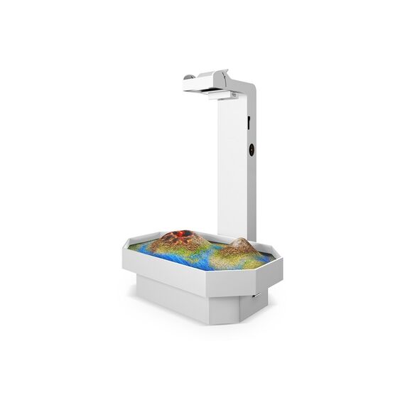 Принцип работы: датчик сканирует поверхность, передавая информацию о глубине в компьютер, и после обработке изображение новой текстуры проецируется на песок. Изменяя глубину песка видимые предметы (насыпи и углубления) преображаются в виртуальные реки, горы, и вулканы. На поверхности могут извергаться вулканы, перемещаться животные, плавают рыбы, вырастают деревья — здесь уже есть место для фантазий.