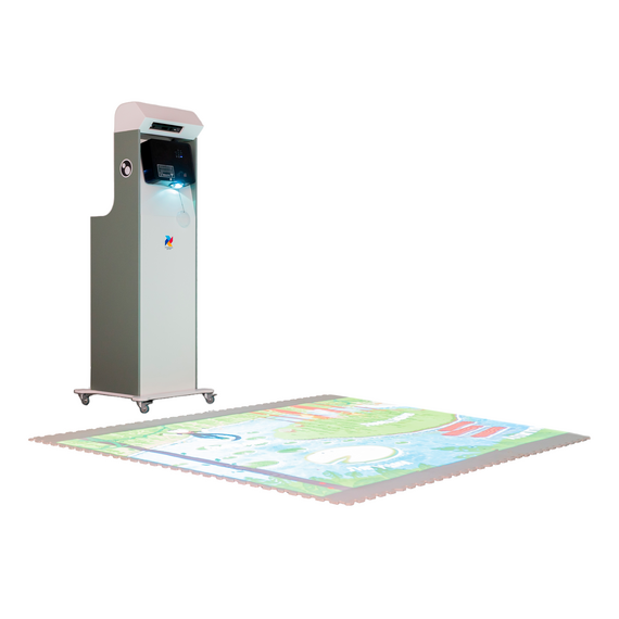 Комплекс представляет из себя интерактивный пол. За счет конструкции тумбы с колесиками, где находится проектор, системный блок и датчик движения, комплекс можно перемещать.