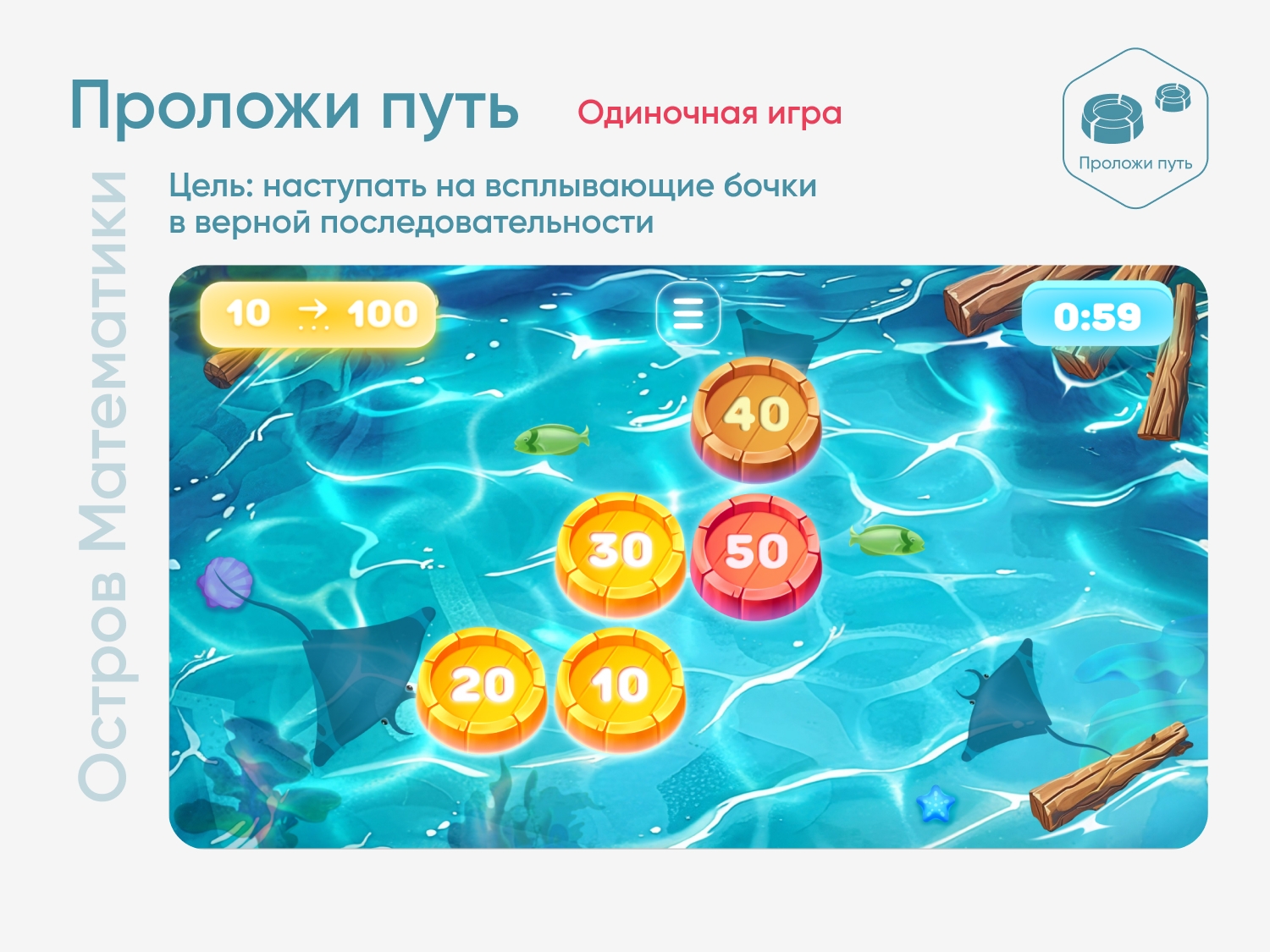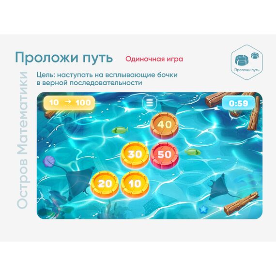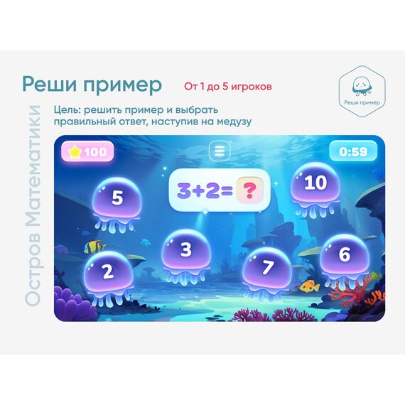 Цель игры — решить пример и выбрать правильный ответ, наступив на нужную медузу.