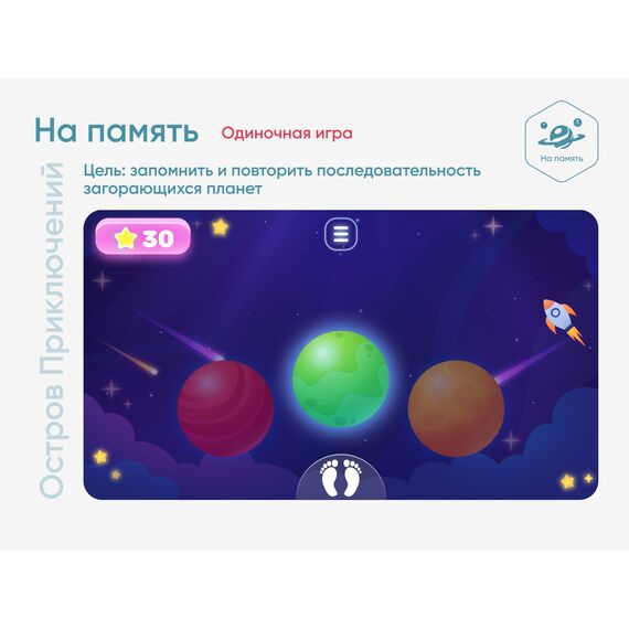 Цель игры — запомнить порядок загорающихся планет и наступать на них в правильной последовательности. Игра продолжается до первой ошибки. Уровней сложности нет.