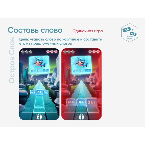 Цель игры — угадать слово по картинке и составить его из предложенных слогов. В ходе игры варианты слогов движутся на игрока, каждый ответ занимает свою дорожку. Для выбора верного ответа необходимо наступить на нужную дорожку и оставаться на ней, пока правильный ответ не доедет до игрока.