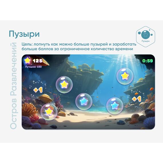 Цель игры — лопнуть как можно больше пузырей и заработать больше баллов за ограниченное количество времени.