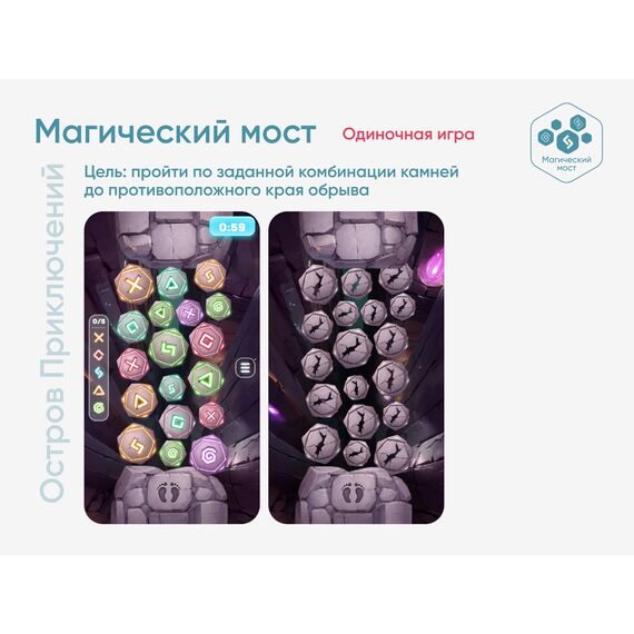 Цель игры — пройти по заданной комбинации камней до противоположного края обрыва. Нужная комбинации символов указана на панели с левой стороны игрового поля. Наступайте на камни с символами, изображенными в задании, соблюдая последовательность снизу-вверх. В случае ошибки мост разрушается. Уровней сложности нет.