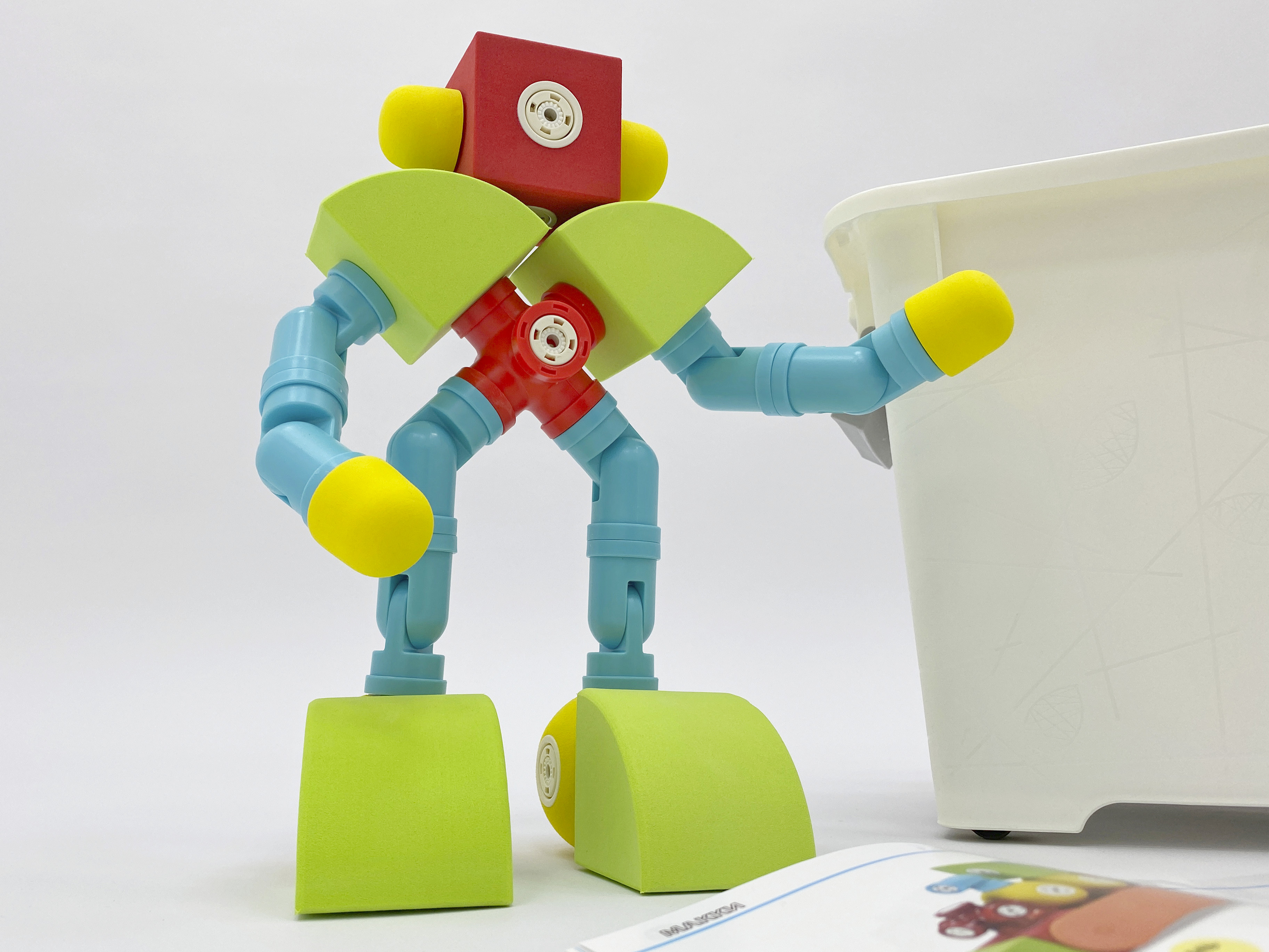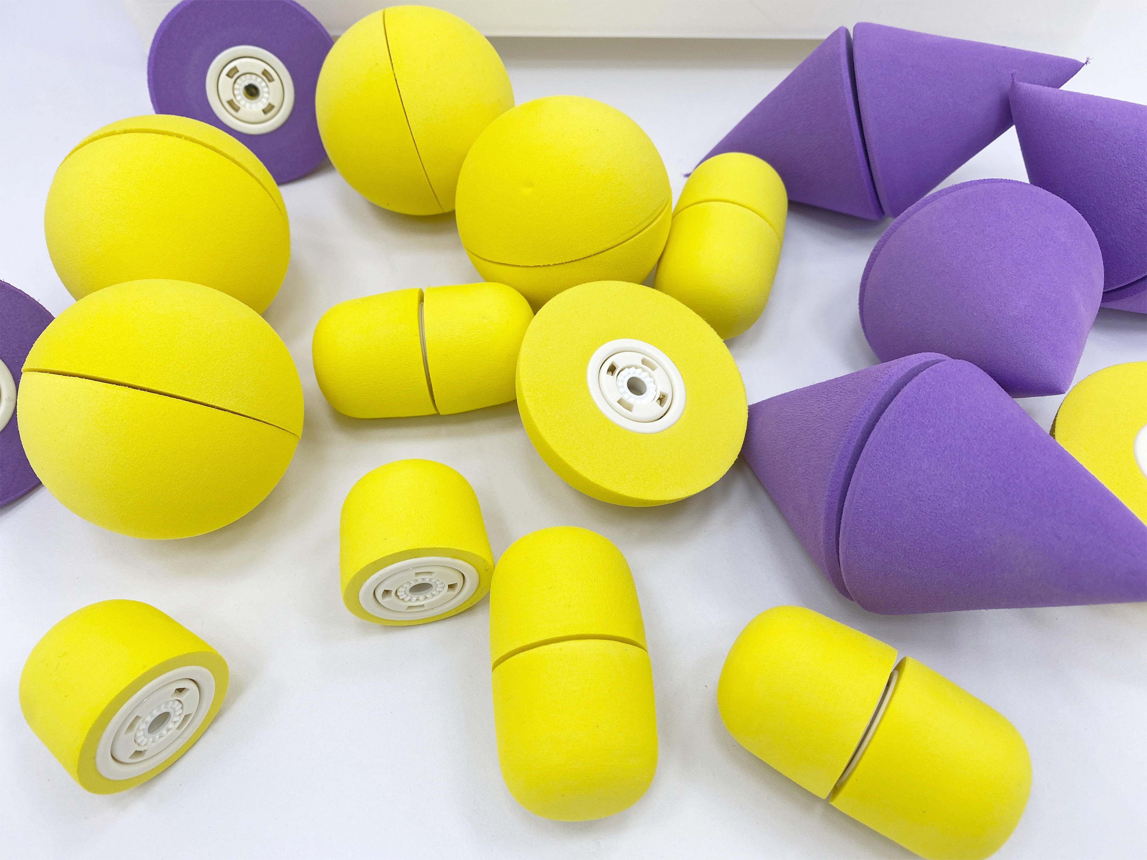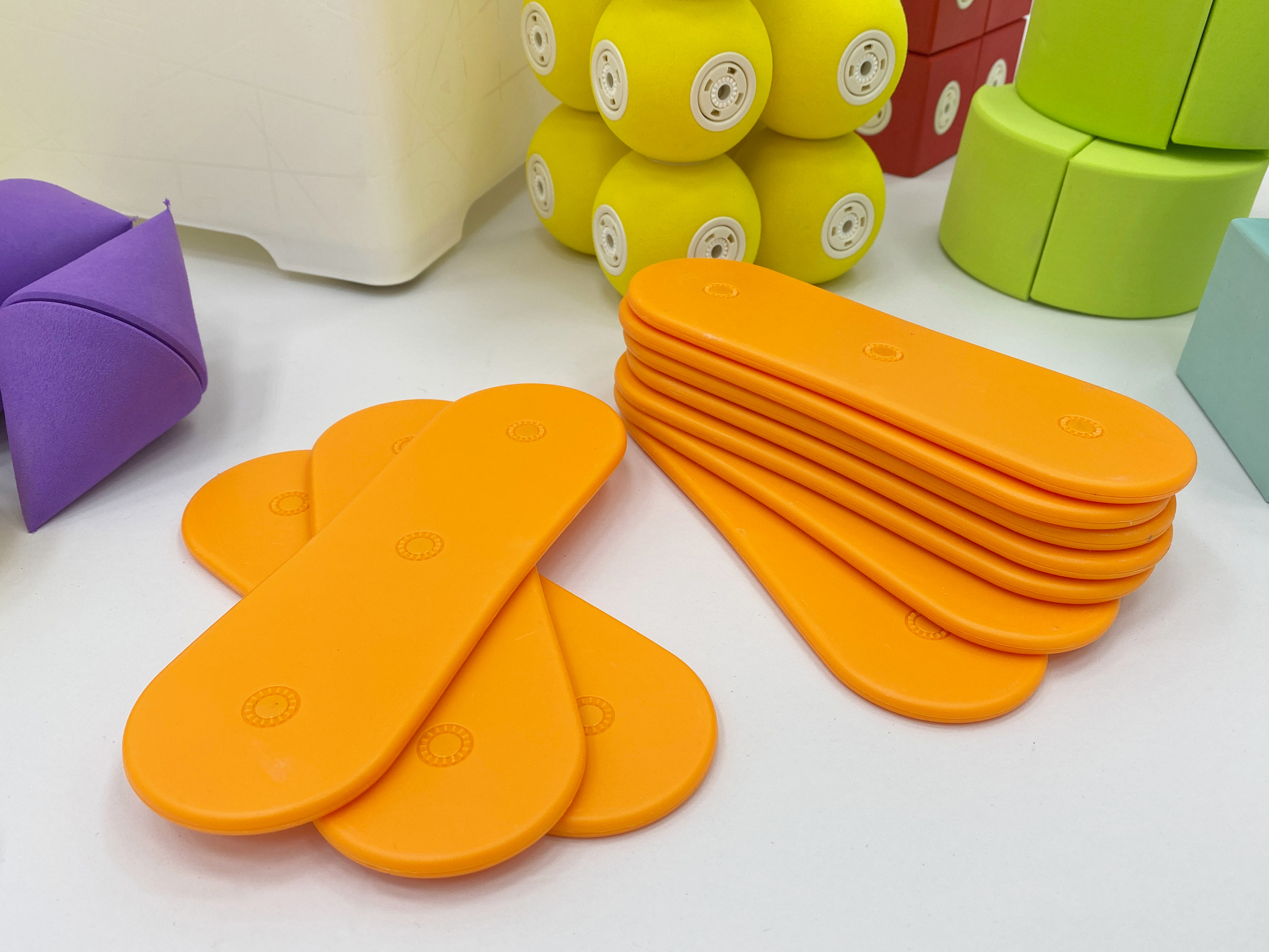 Детали конструктора окрашены в приятные однотонные цвета, со звуковым эффектом погремушки. Каждая из деталей имеет от 1 до 9 вариантов магнитной стыковки, что практически не ограничивает ребенка в конструировании. Простые детали отлично подходят для детей младшей группы ДОУ, детей с ОВЗ и РАС. Более сложные по форме и креплениям детали предназначены для детей средней и старшей группы.