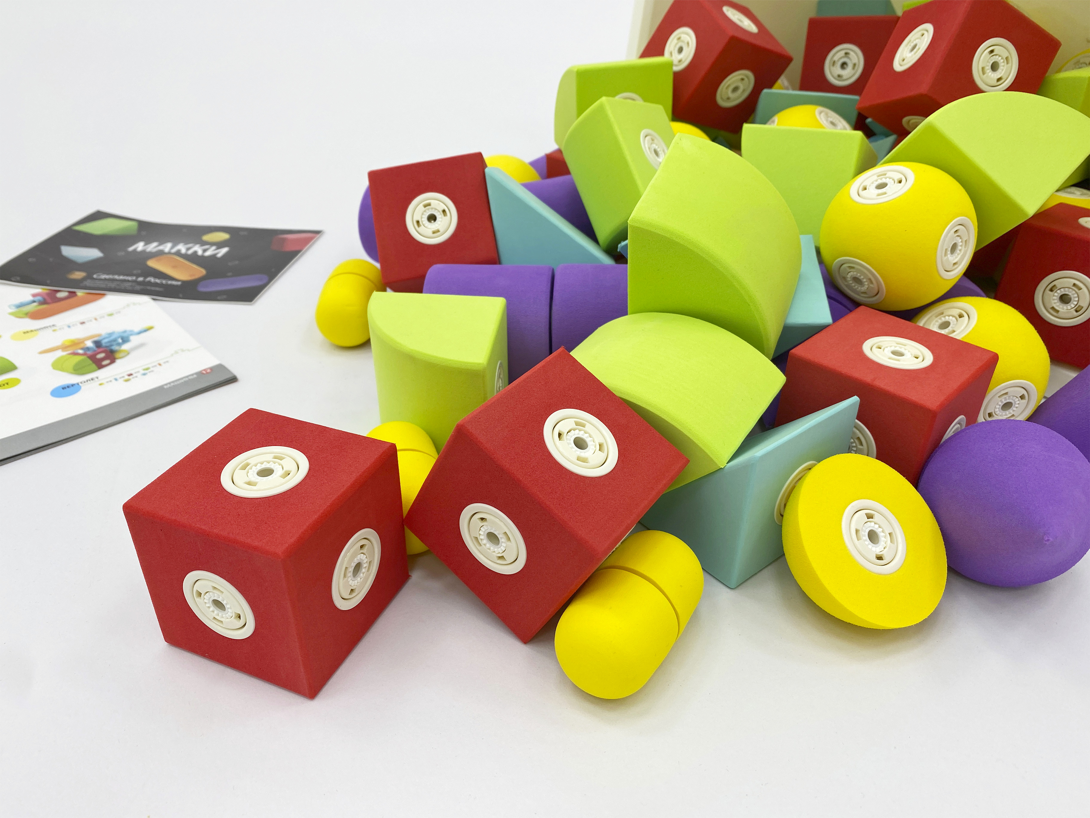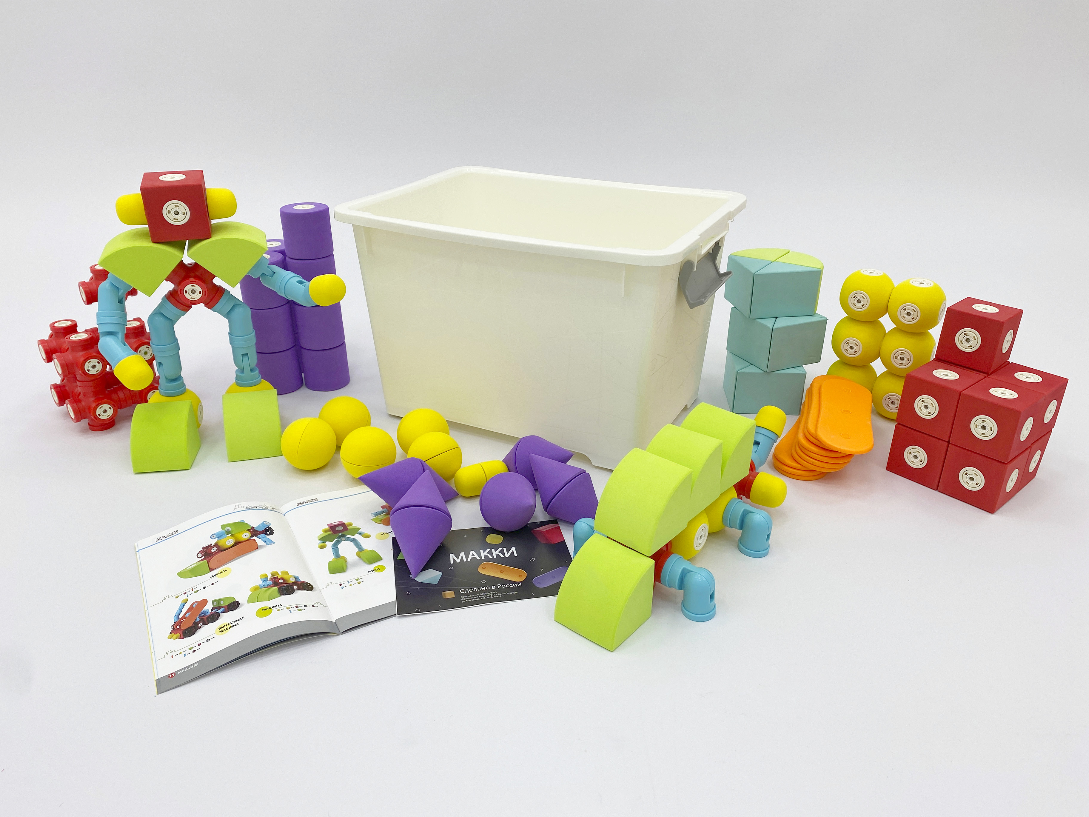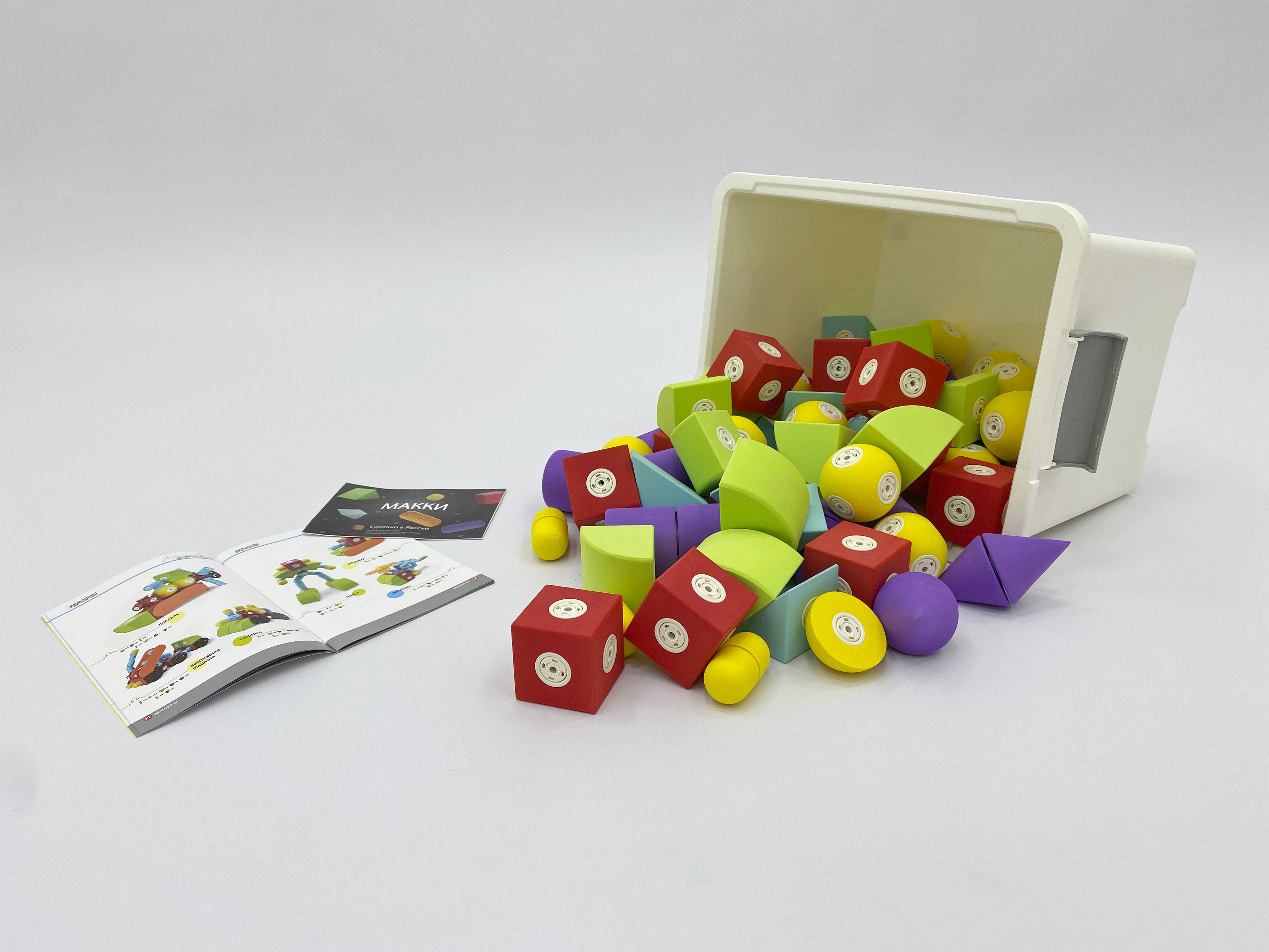 Конструктор «МАККИ 120» — набор цветных магнитных деталей (крупных геометрических фигур с магнитными креплениями), рассчитанный на группу учеников до 16 человек.