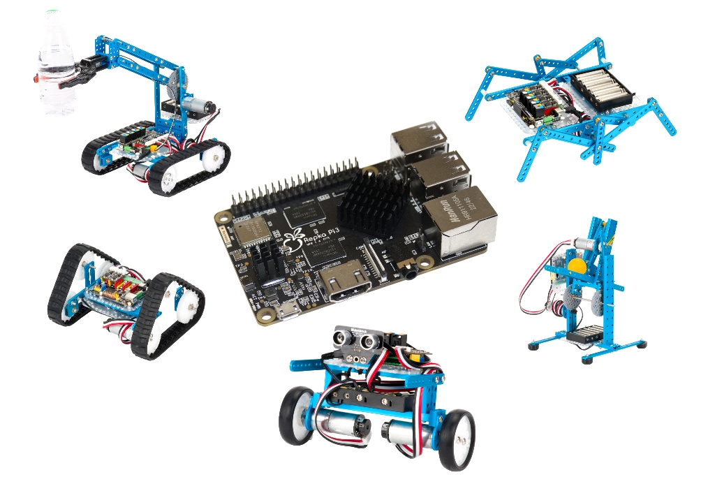 Возможность подключения к российскому одноплатному компьютеру Repka Pi (входит в состав поставки) значительно расширяет возможности для создания более сложных проектов за счет использования программ и библиотек этой платформы и платформы Raspberry Pi. Основной контроллер MegaPi поддерживает подключение до 10 двигателей постоянного тока или 4 шаговых двигателей или 4 двигателей с энкодером и до 8 сервоприводов. Это позволяет создавать сложные мехатронные устройства. Более 550 конструктивных элементов, датчики, силовые модули, элементы питания позволяют строить разнообразные типы роботов.