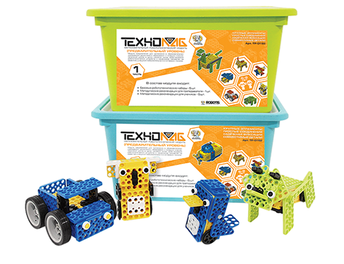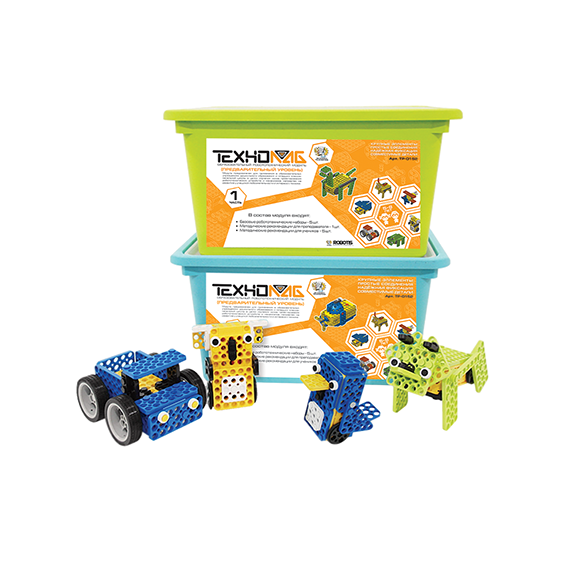 Все элементы каждого базового робототехнического набора, входящего в комплект поставки конструктивно и электрически совместимы друг с другом.