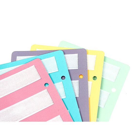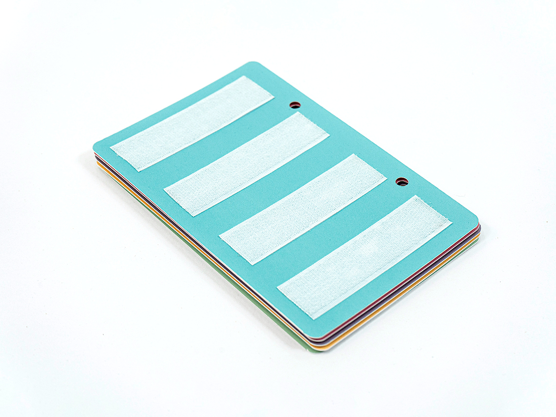 - На странице 5 полос ленты-липучки, вмещается до 20 карточек