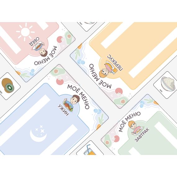 Пособие для ориентировки ребенка в питании в течении дня. Помогает снять напряжение, поддерживает мотивацию ребенка. Вариант для мальчика и для девочки.