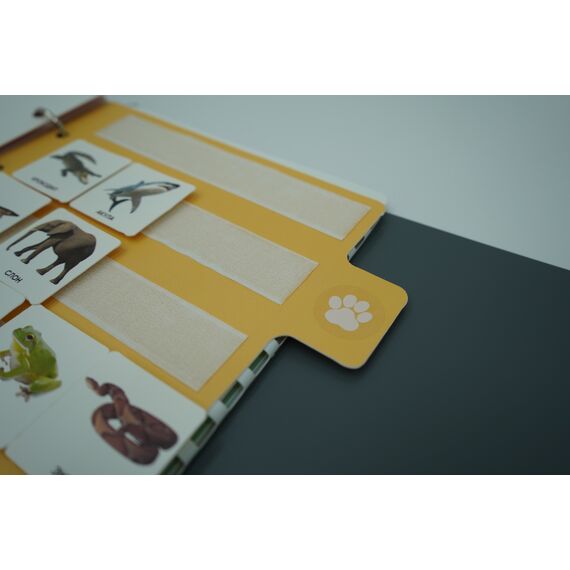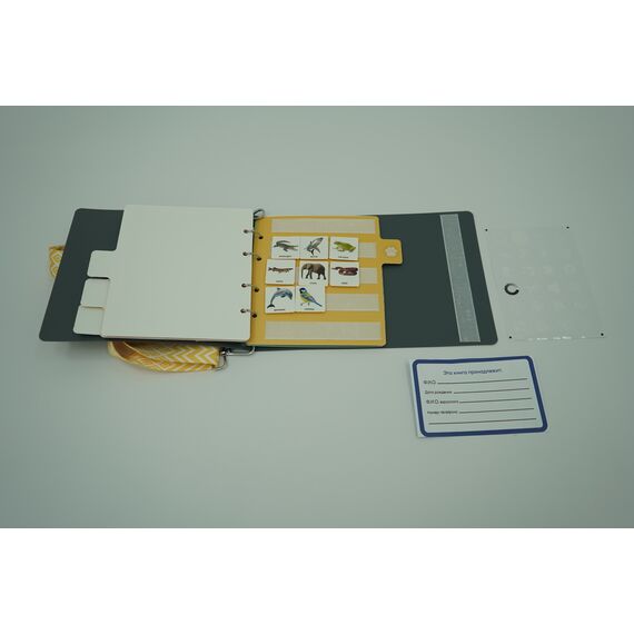 В комплекте есть тематические наклейки на страницы (для быстрого ориентирования) и наклейка-адресник. На задней стороне книги печать 3х символов: «да», «нет», «не знаю» - они позволяют ребёнку быстро сообщить собеседнику краткий ответ.