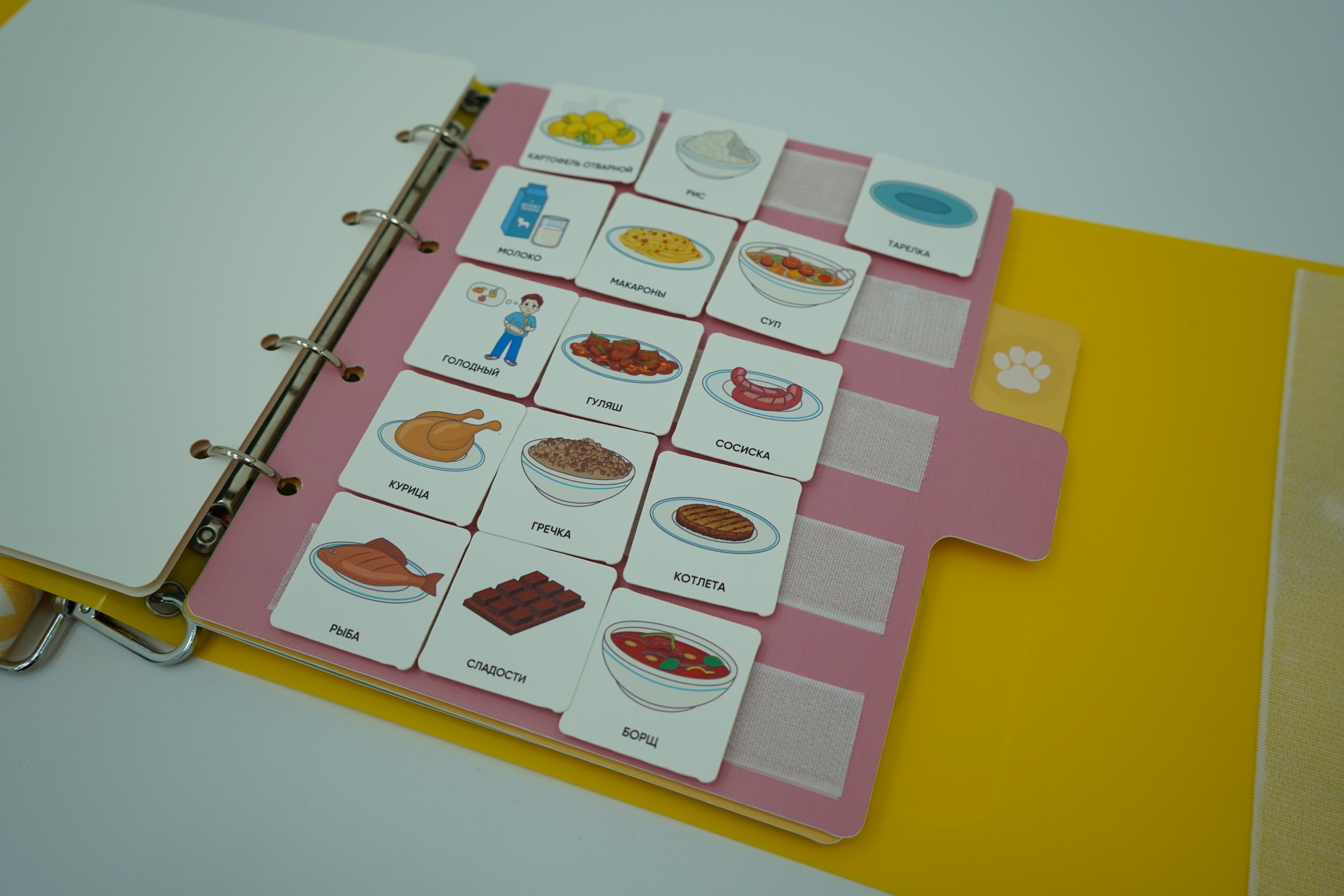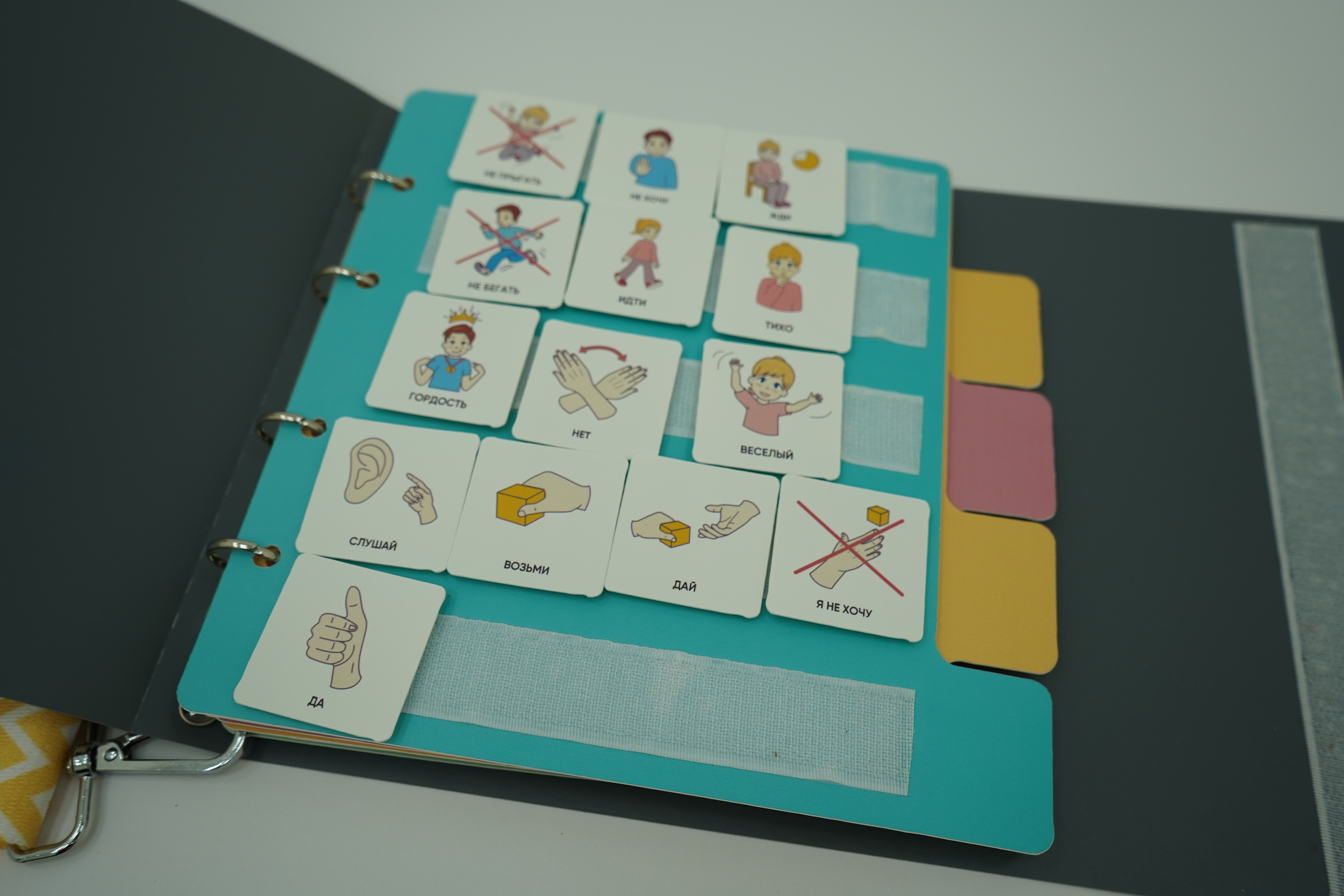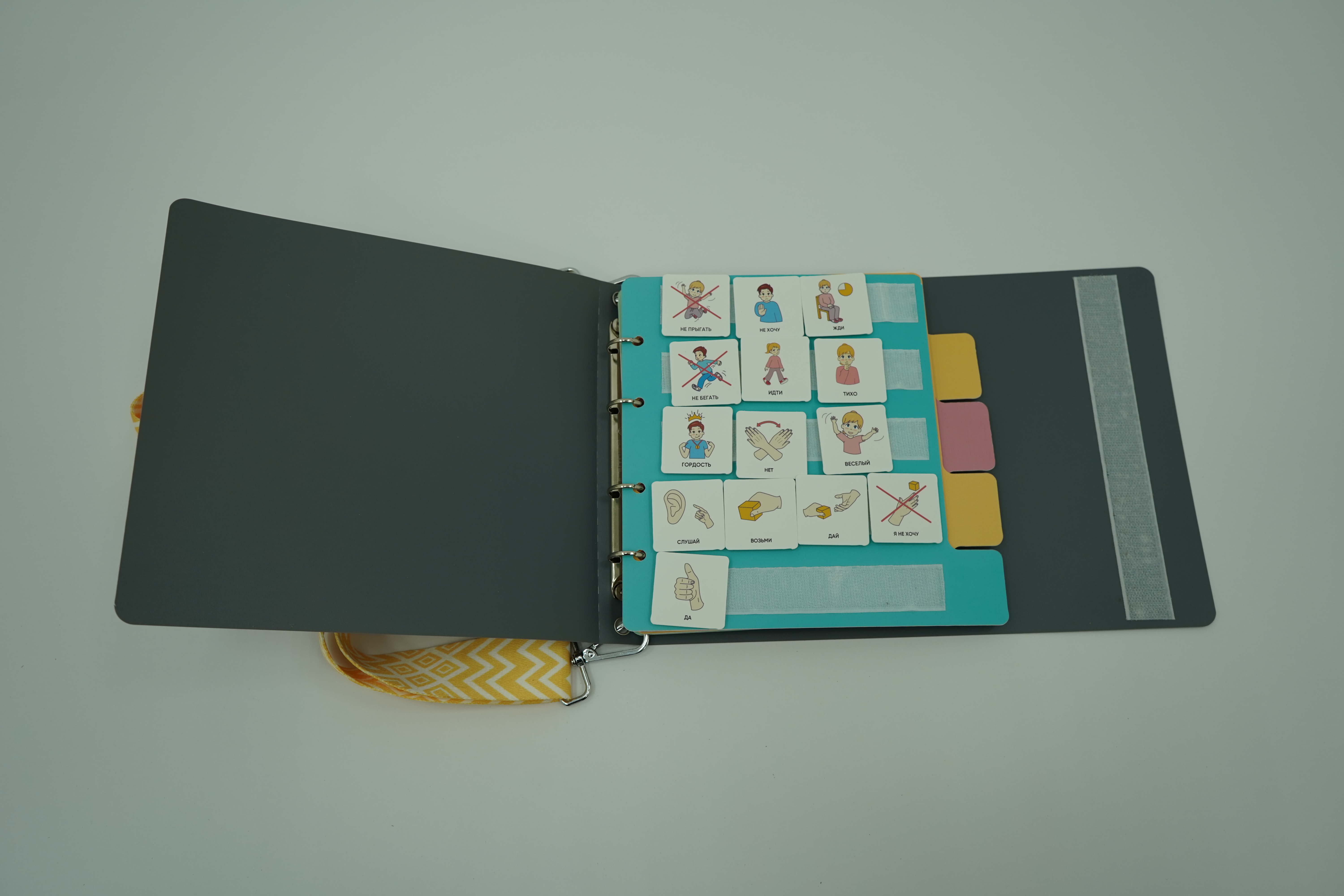 Коммуникативная книга для карточек PECS/ПЕКС подходит не только детям с аутизмом, но и детям с тугоухостью, ЗПР, ДЦП, алалией, тяжёлыми случаями заикания.