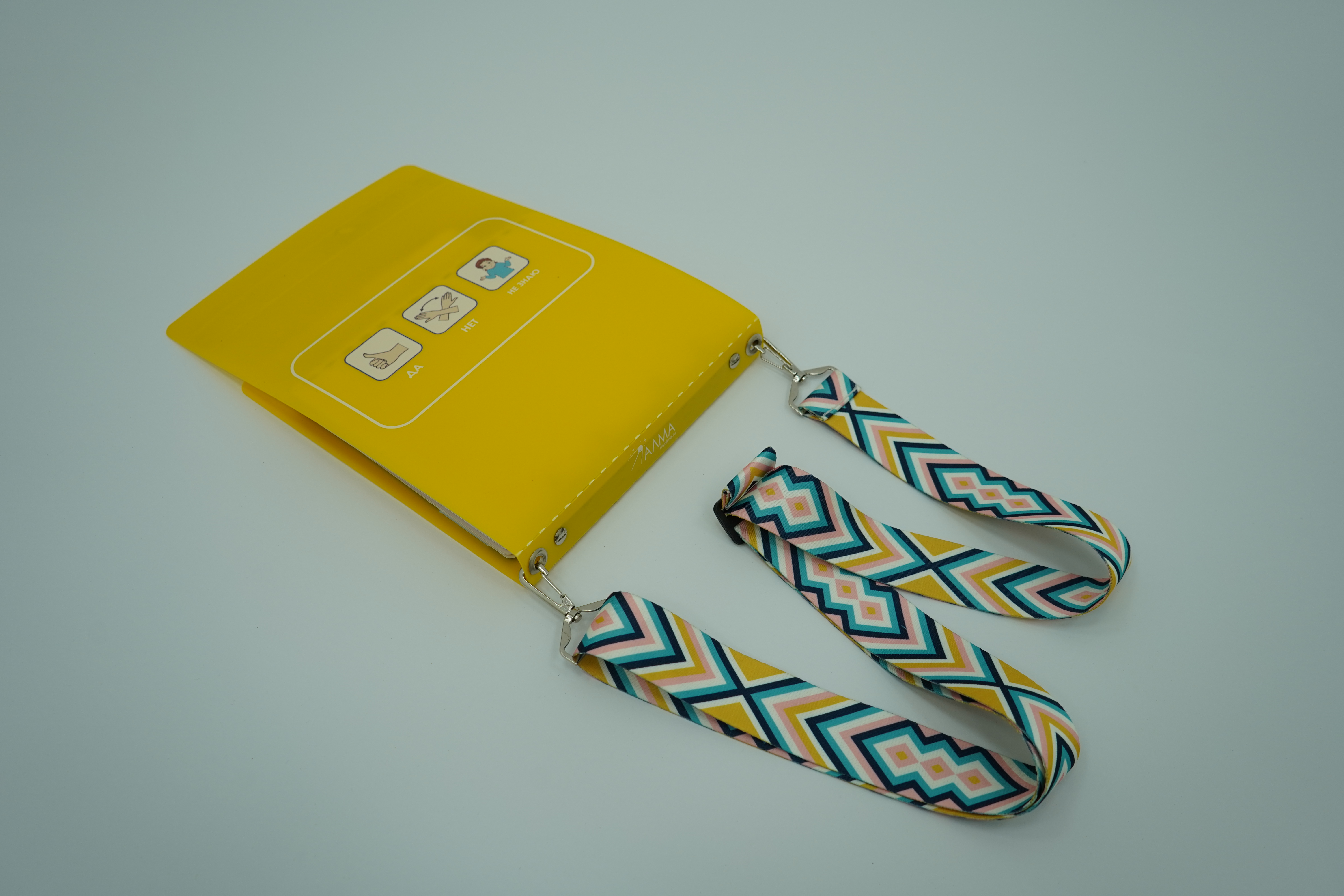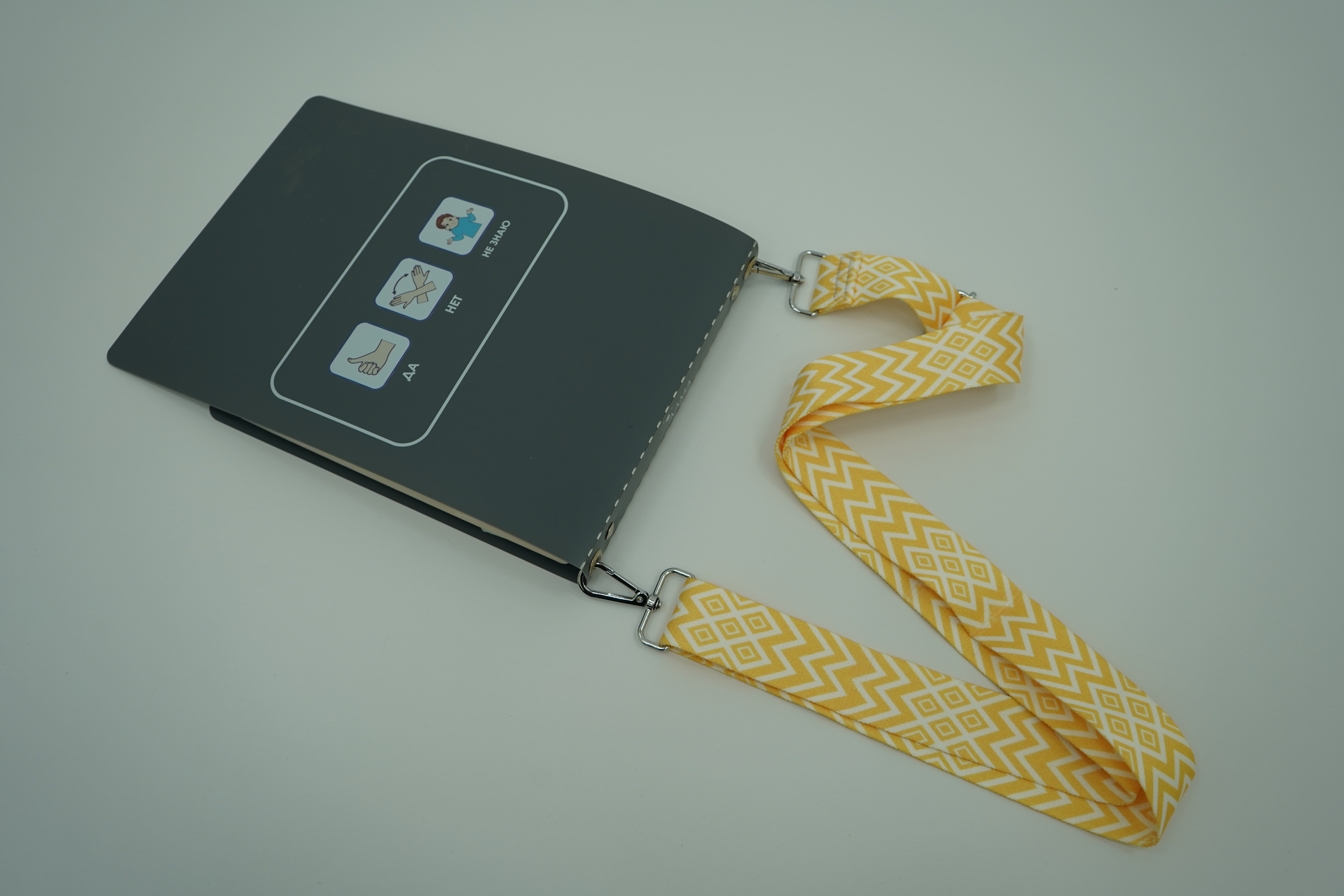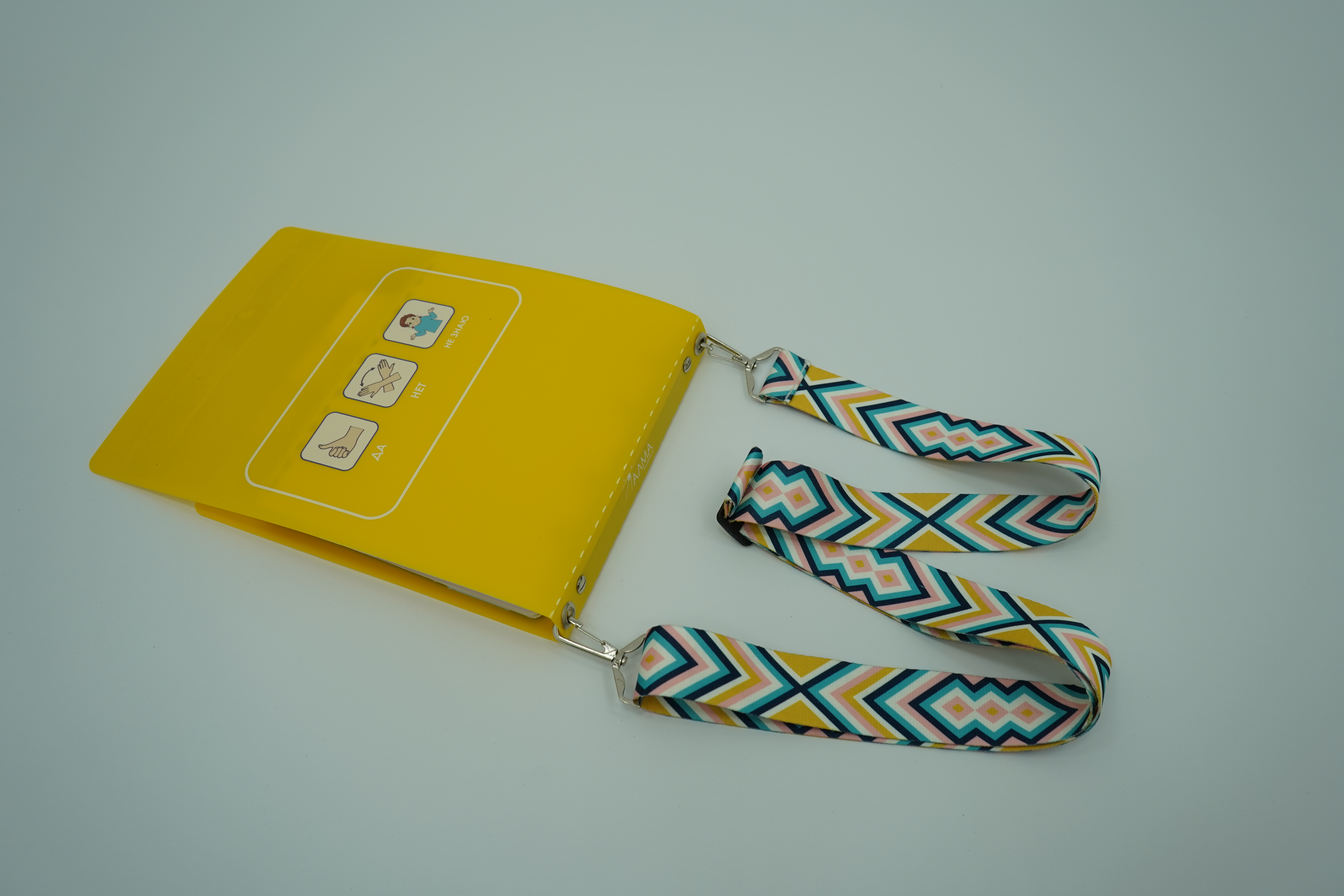 Для удобства ношения есть цветной ремешок, его можно надеть на шею или повесить книгу на плечо.
