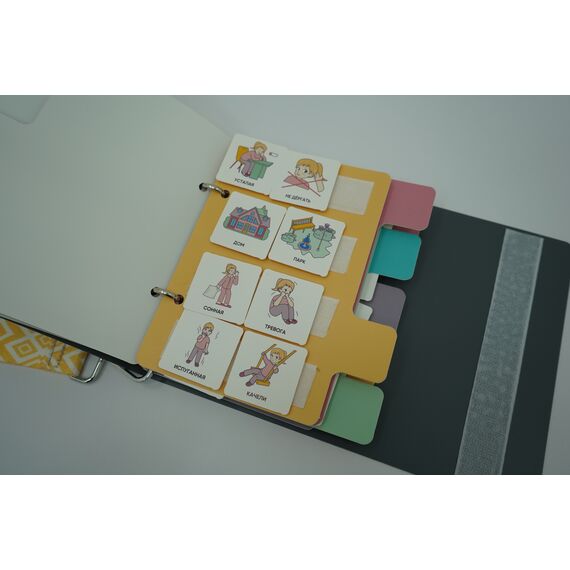 Коммуникативная книга для карточек PECS/ПЕКС подходит не только детям с аутизмом, но и детям с тугоухостью, ЗПР, ДЦП, алалией, тяжёлыми случаями заикания.