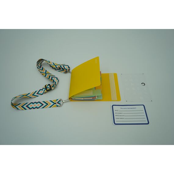 Для удобства ношения есть цветной ремешок, его можно надеть на шею или повесить книгу на плечо.