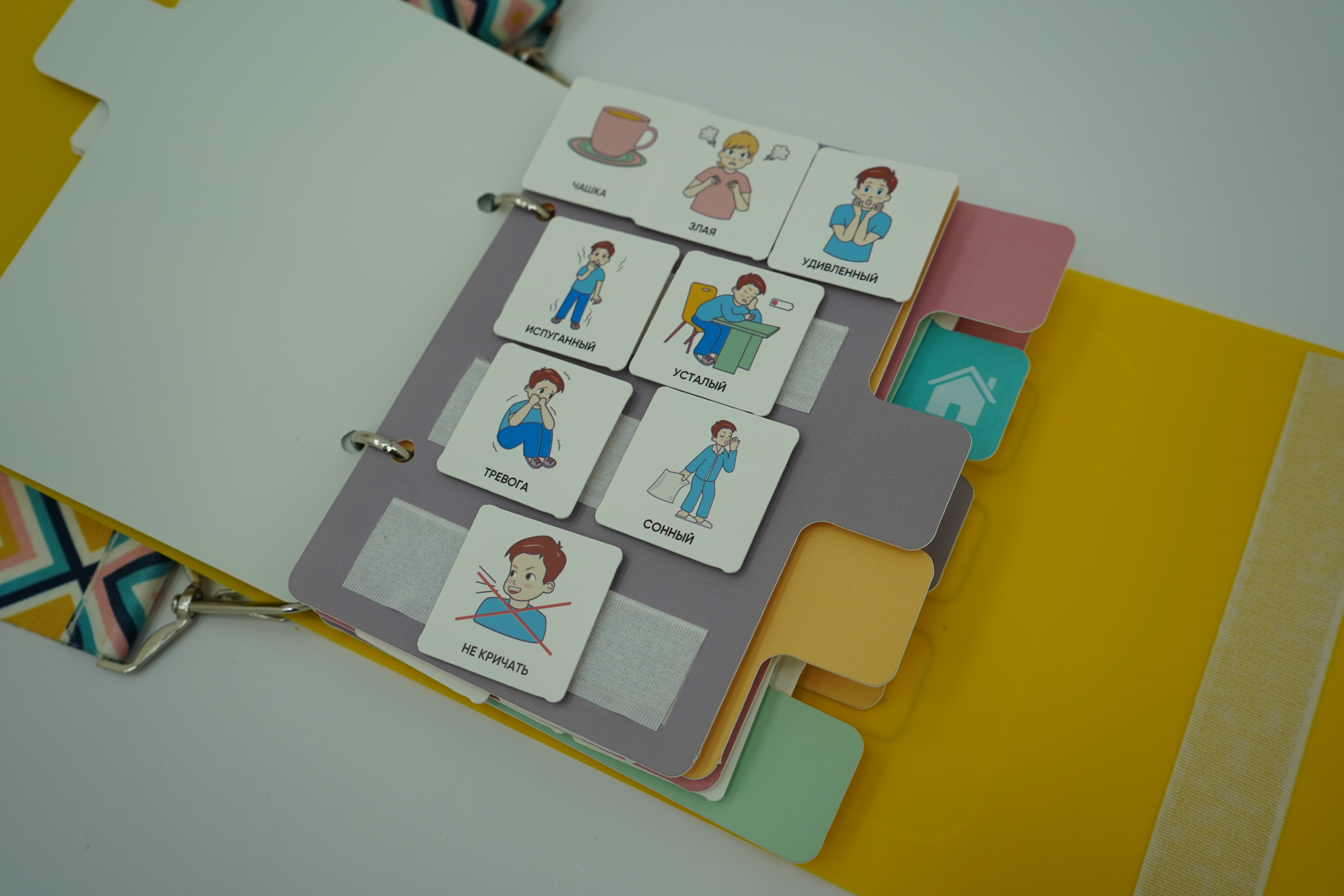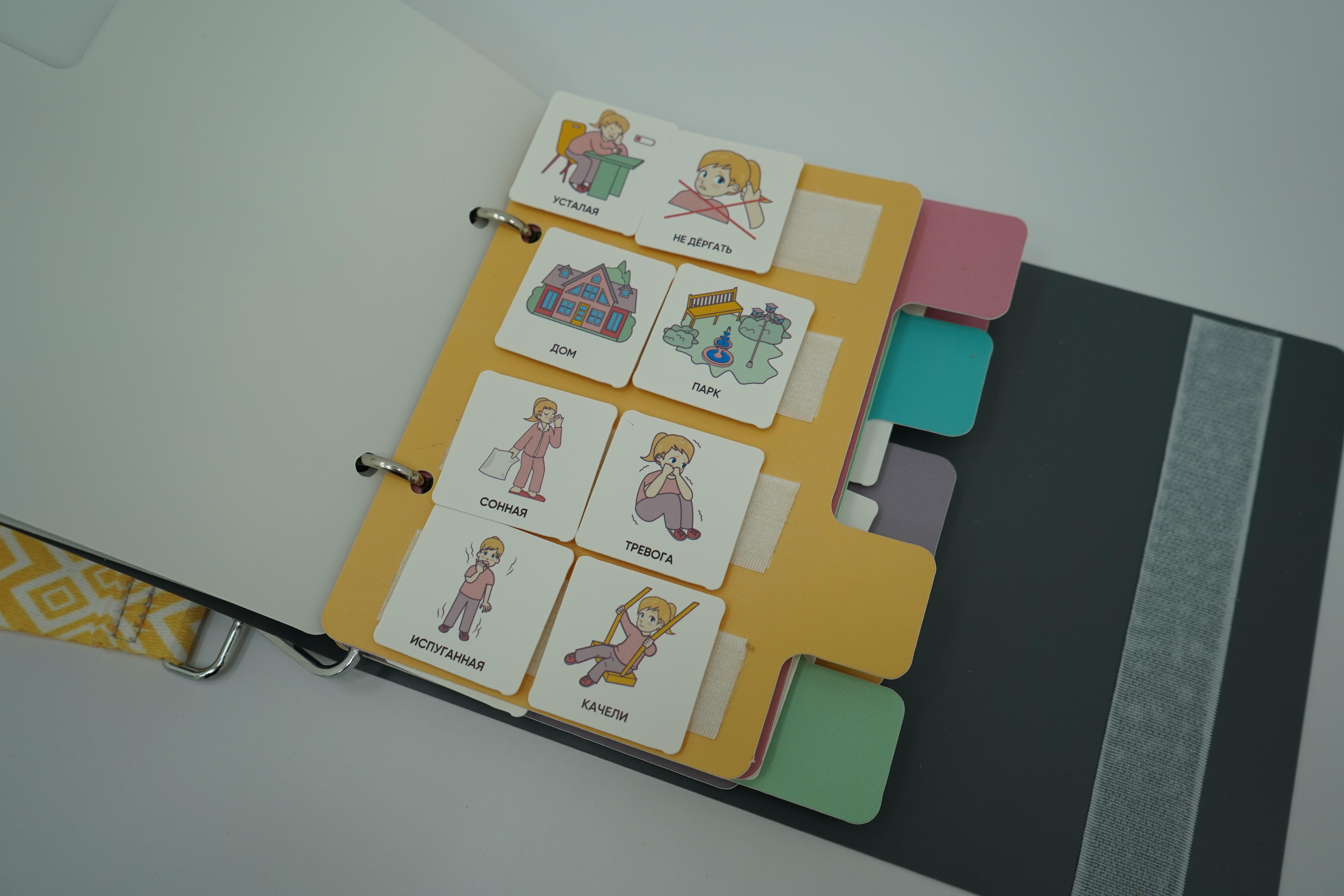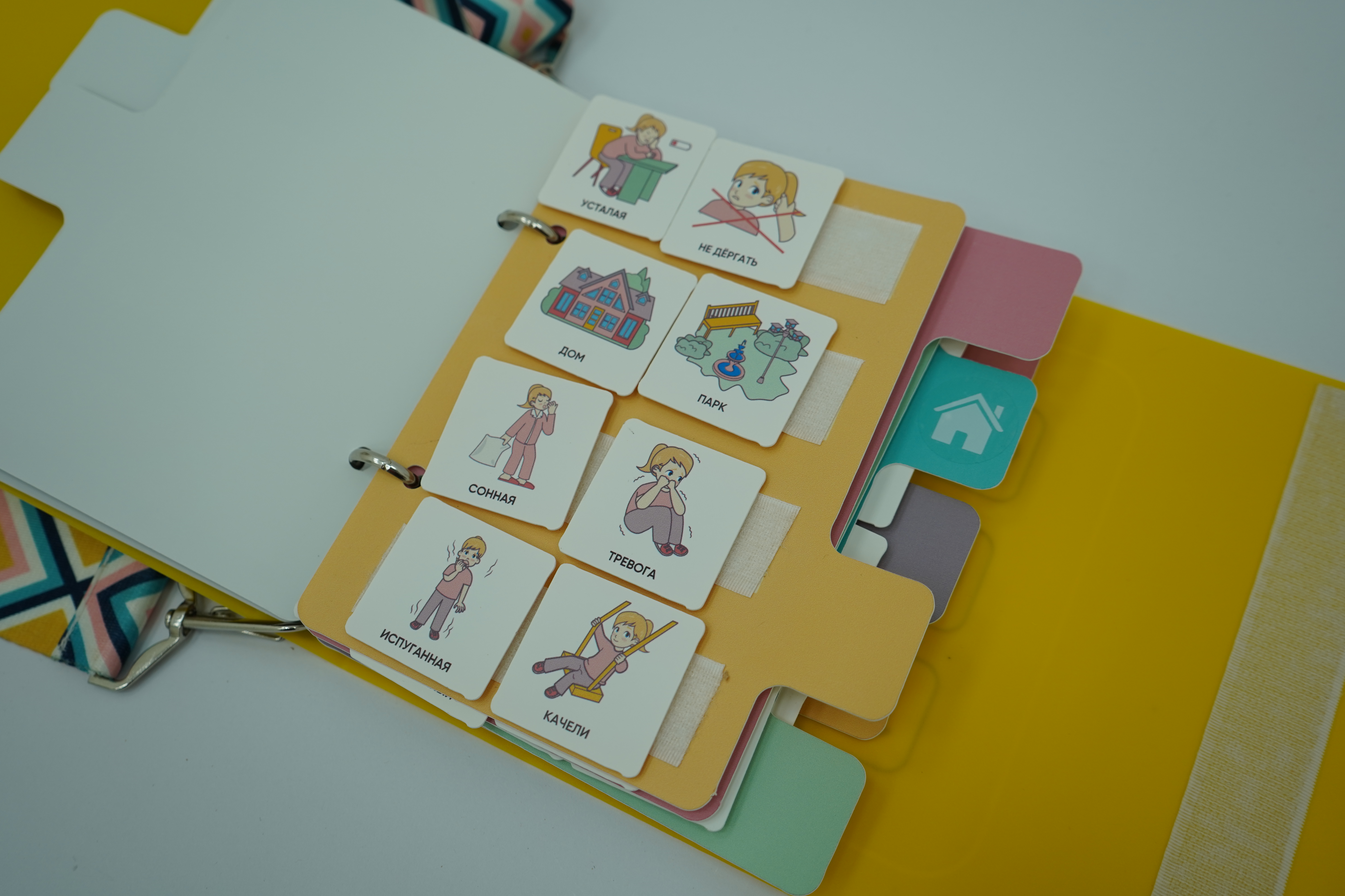 Коммуникативная книга для карточек PECS/ПЕКС подходит не только детям с аутизмом, но и детям с тугоухостью, ЗПР, ДЦП, алалией, тяжёлыми случаями заикания.