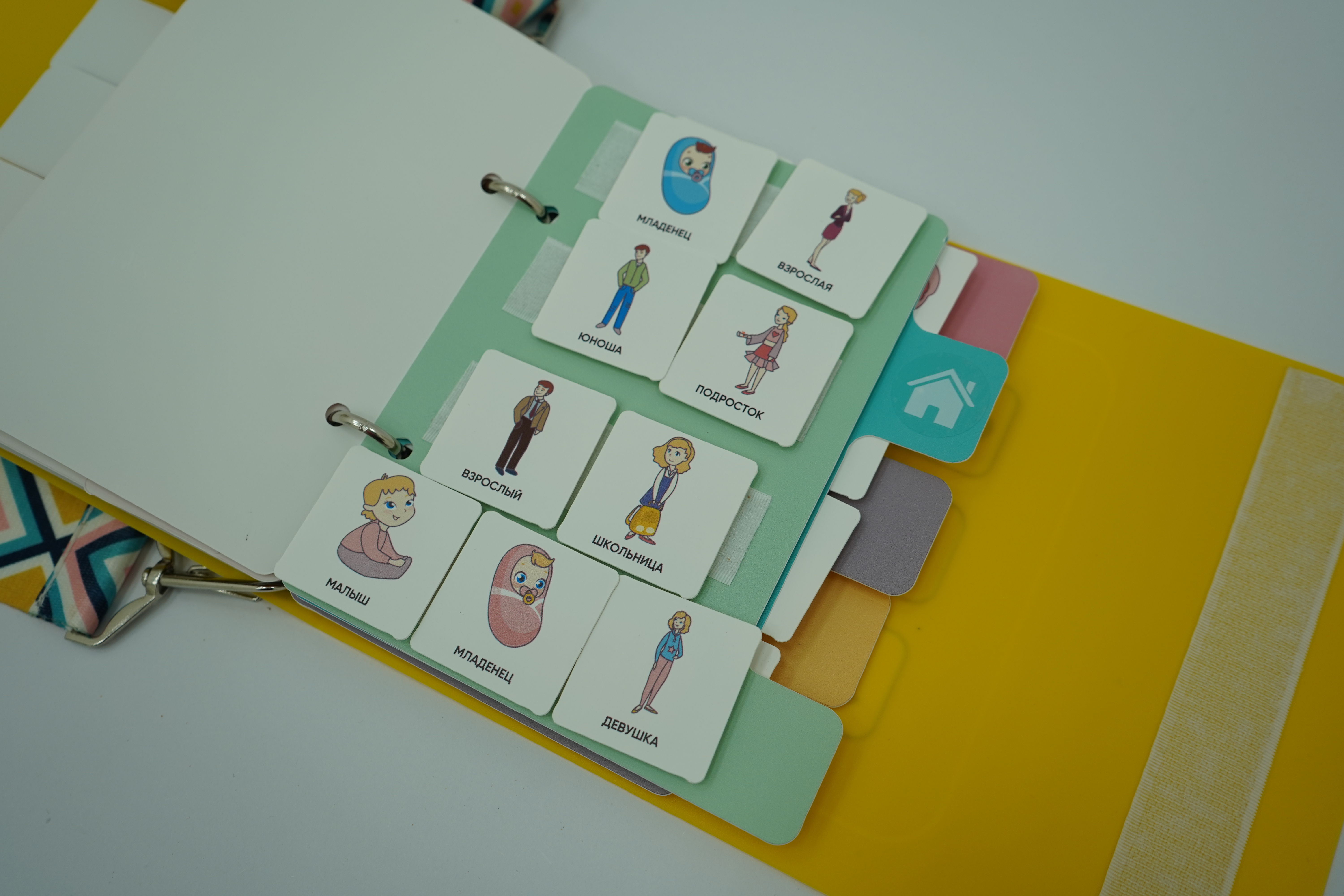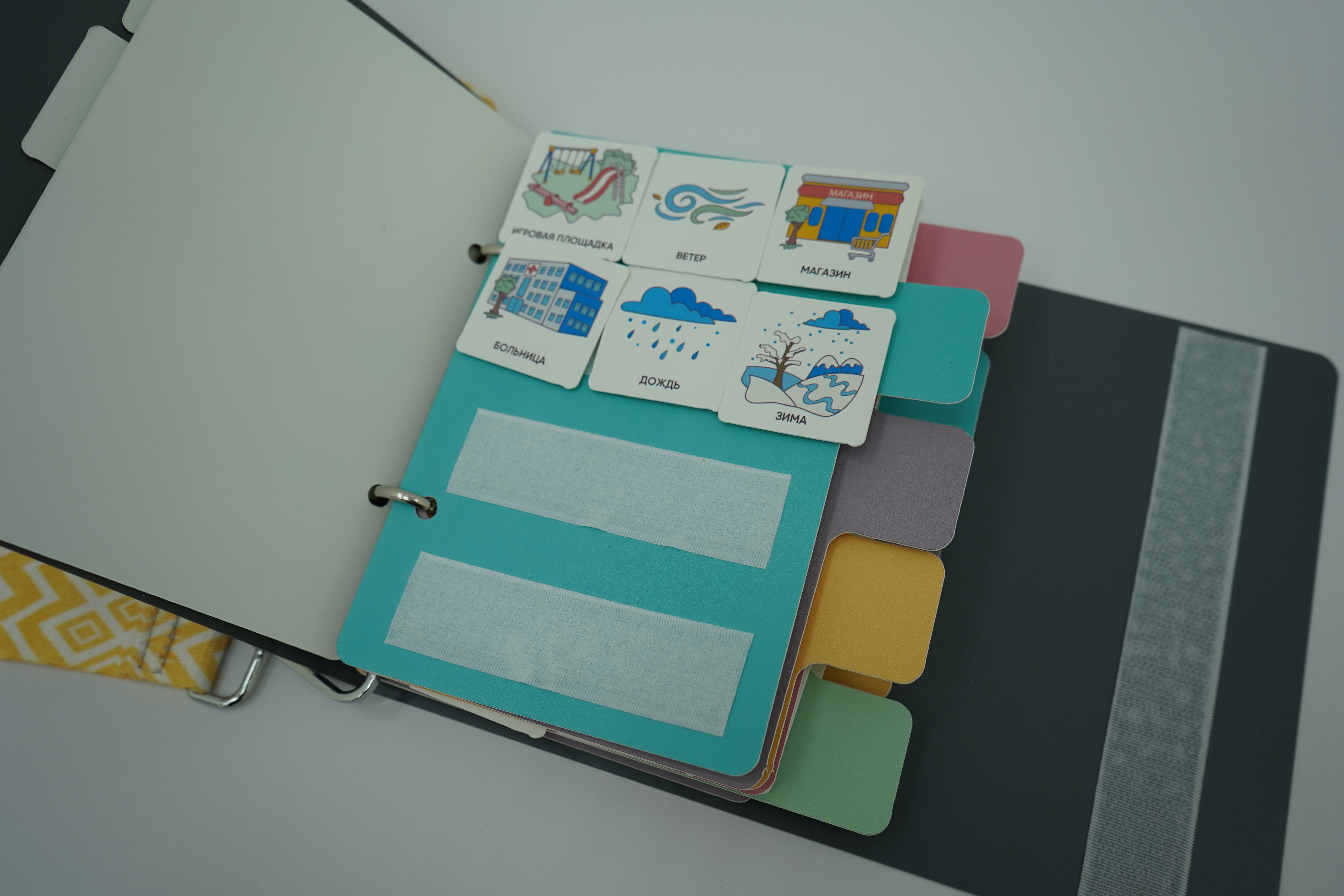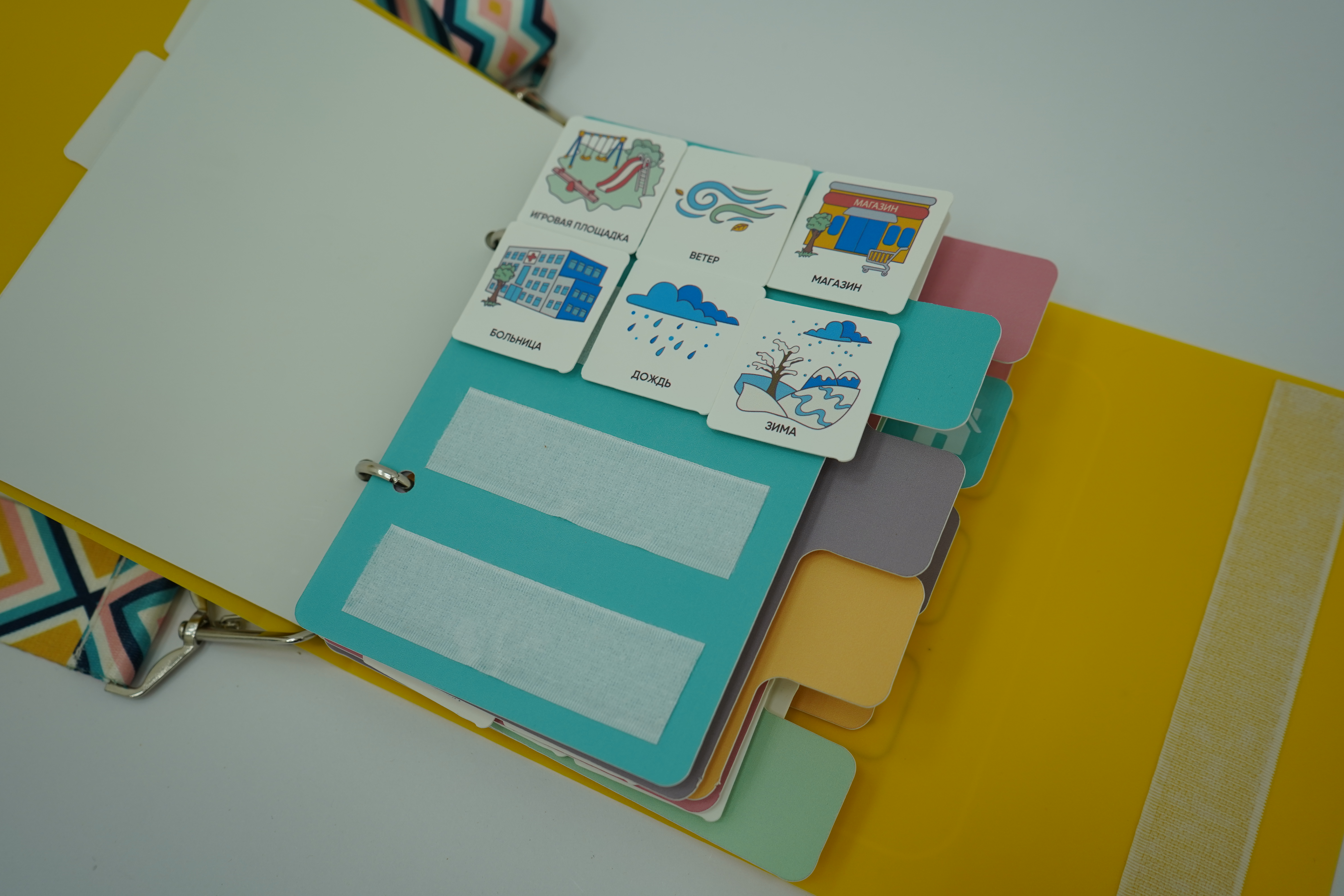 Коммуникативная книга для карточек PECS/ПЕКС подходит не только детям с аутизмом, но и детям с тугоухостью, ЗПР, ДЦП, алалией, тяжёлыми случаями заикания.