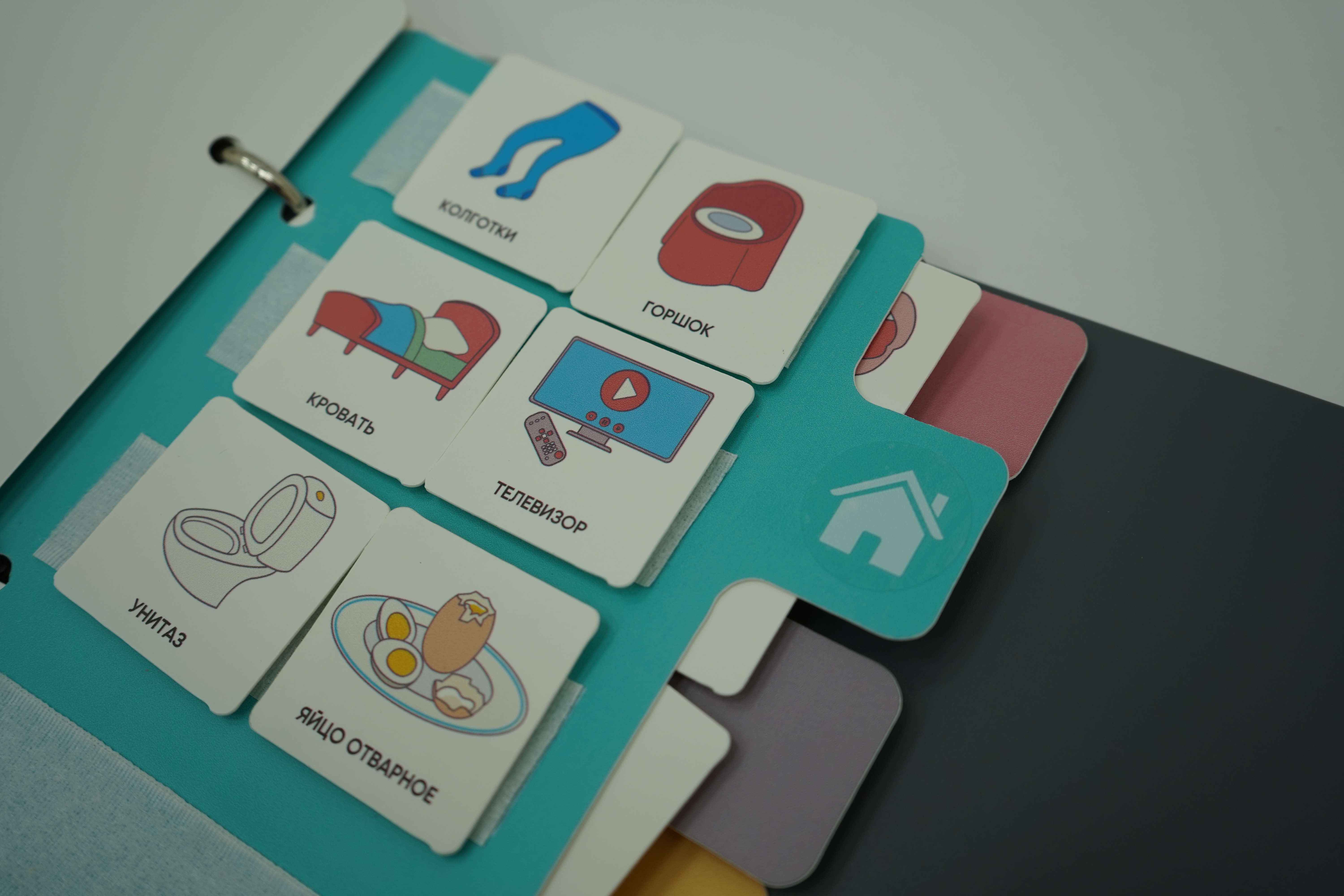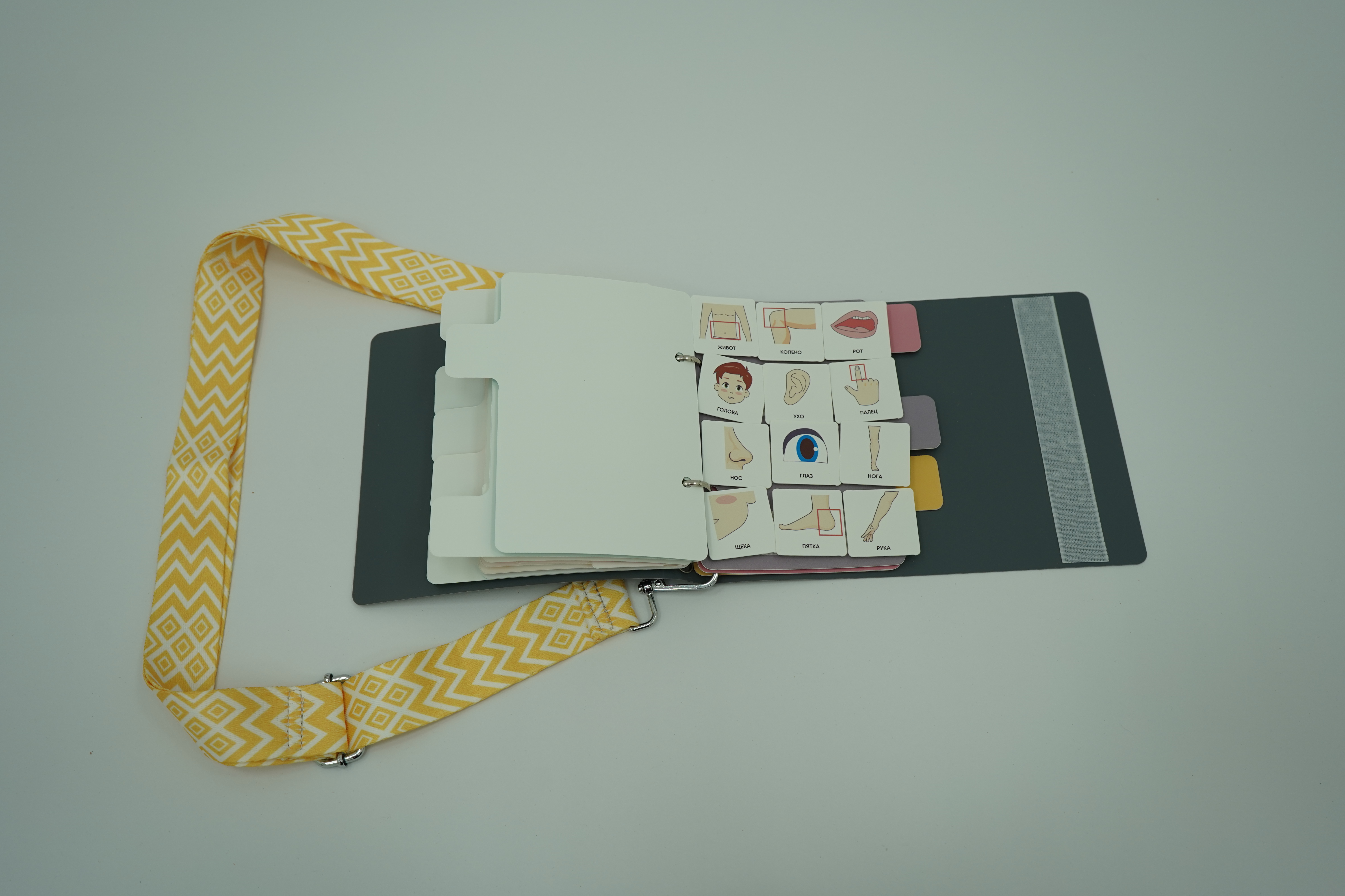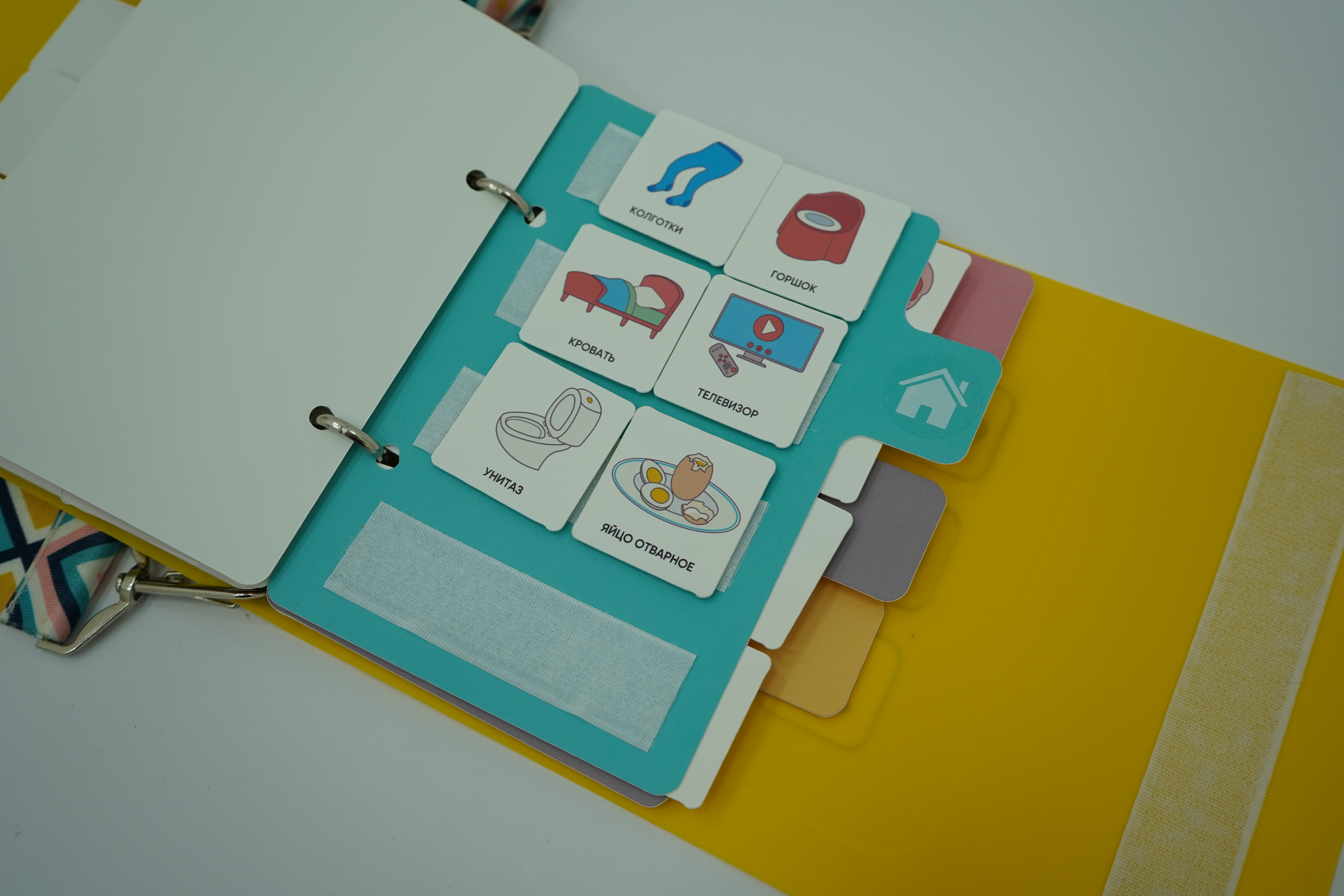 Инструмент для альтернативной/дополнительной коммуникации у детей, имеющих проблемы с речью (в том числе, РАС). Это пластиковая папка на кольцах, куда вкладываются жёсткие листы с рядами ленты-липучки велкро. На ленту приклеиваются карточки PECS/ПЕКС, служащие средством обмена информации между неговорящим ребёнком и взрослым.
