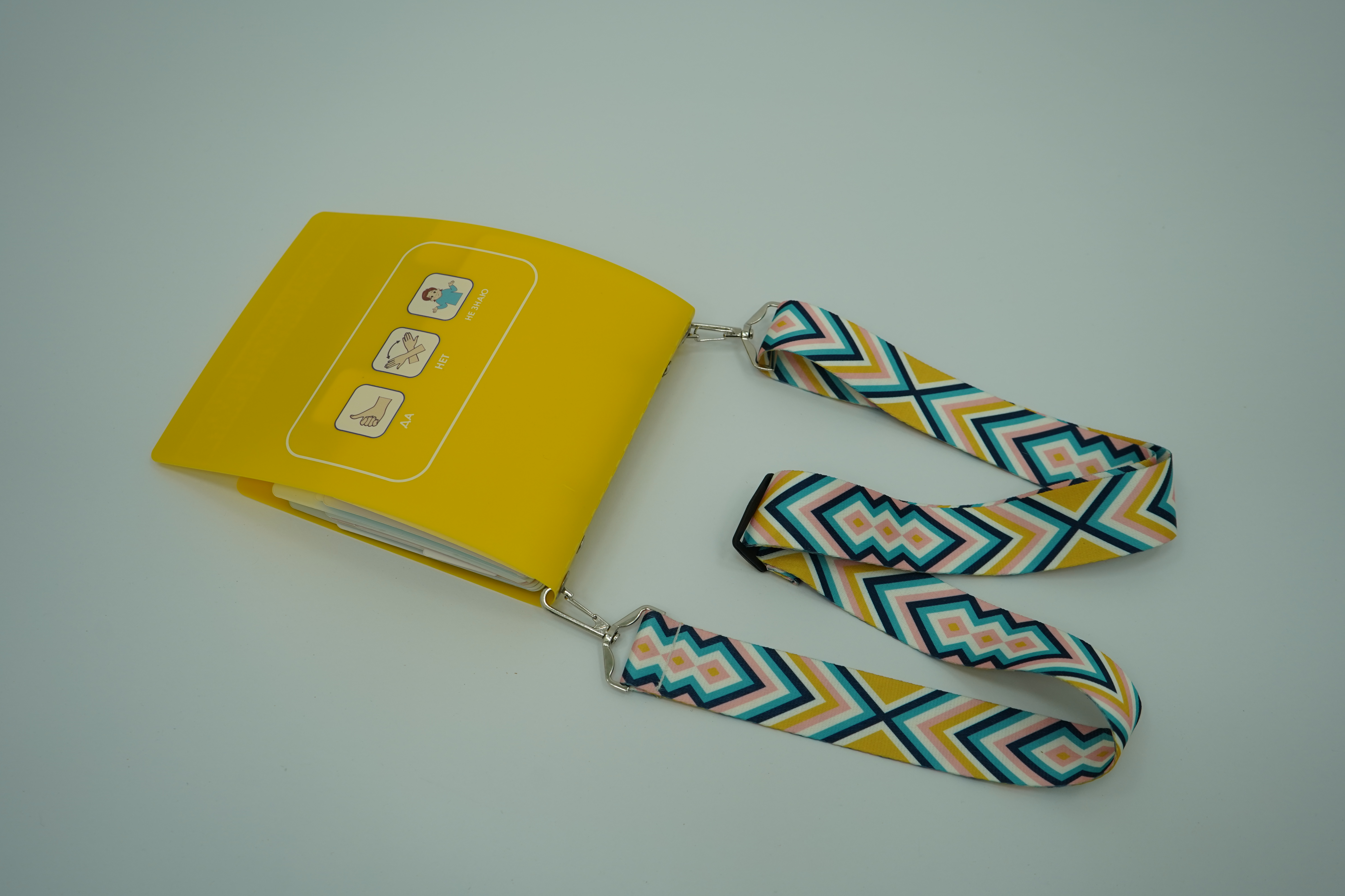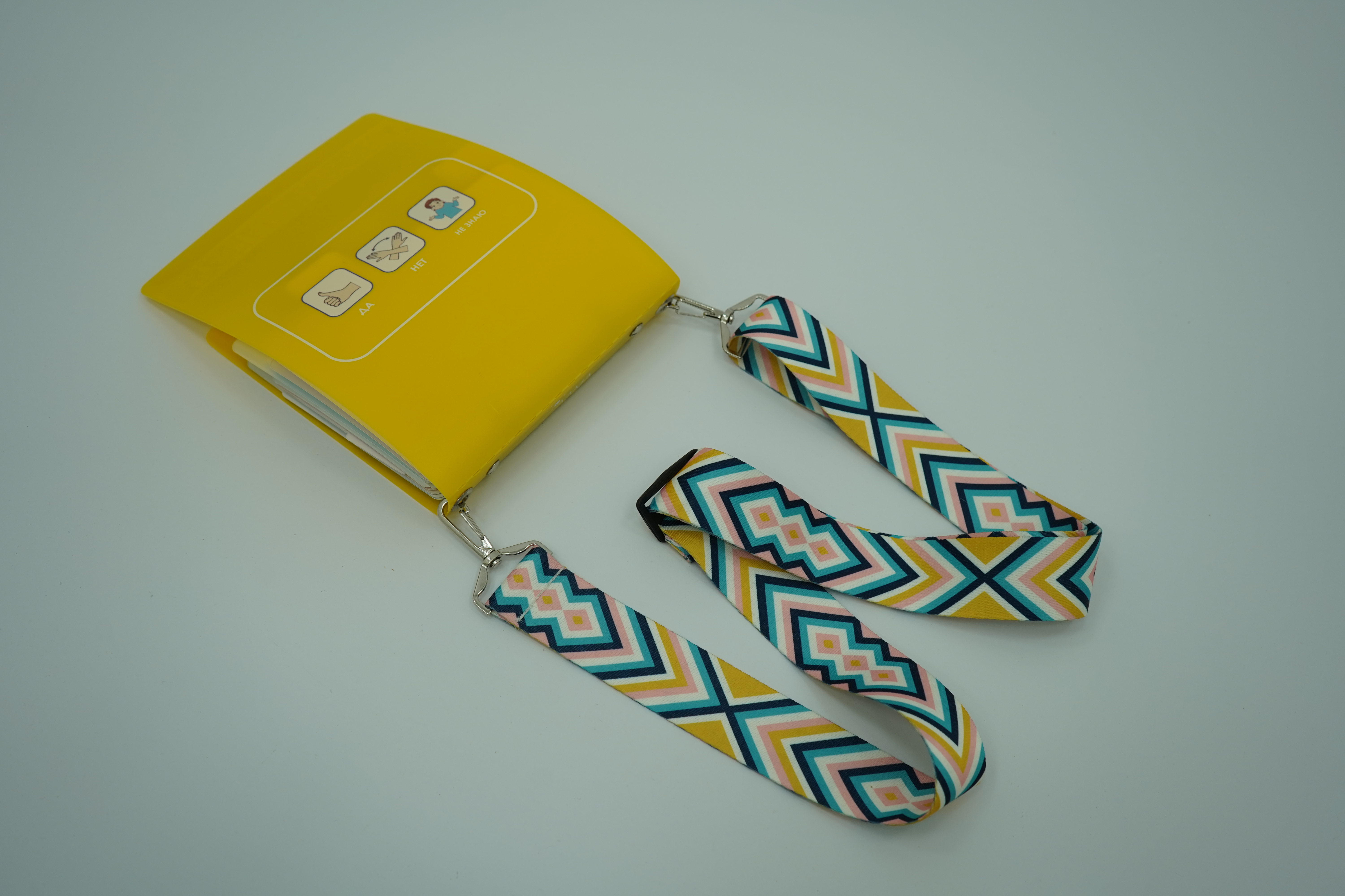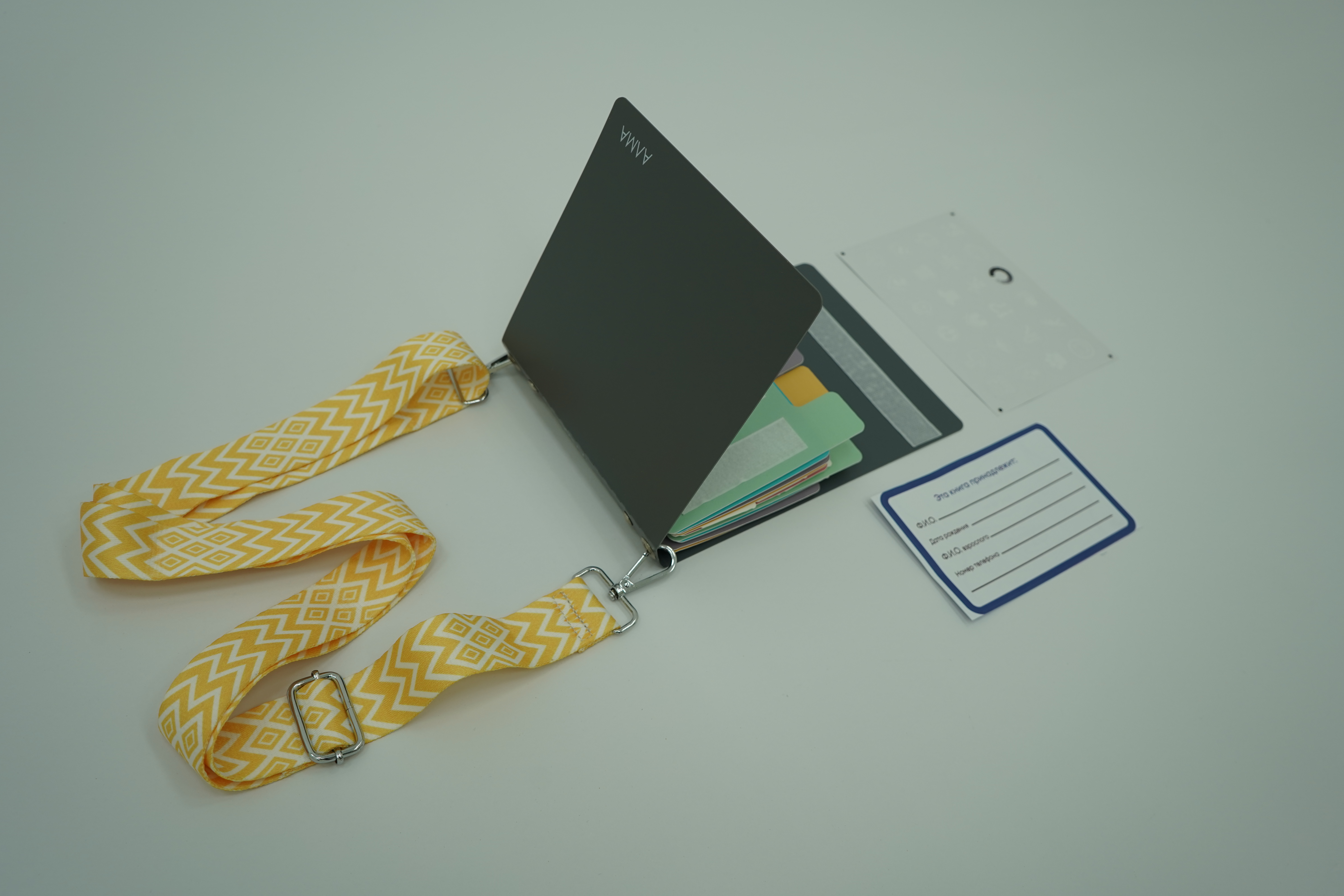 Для удобства ношения есть цветной ремешок, его можно надеть на шею или повесить книгу на плечо.