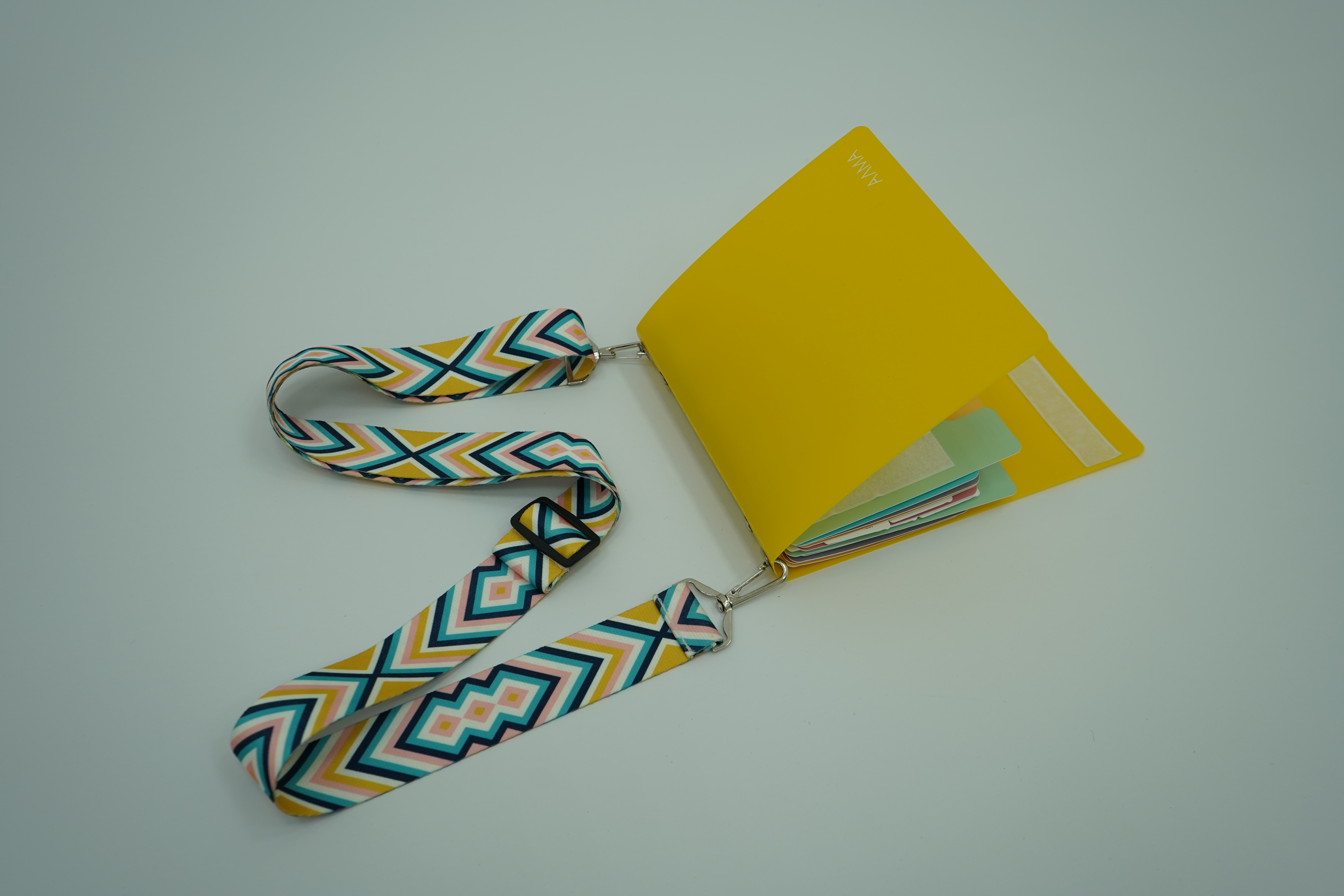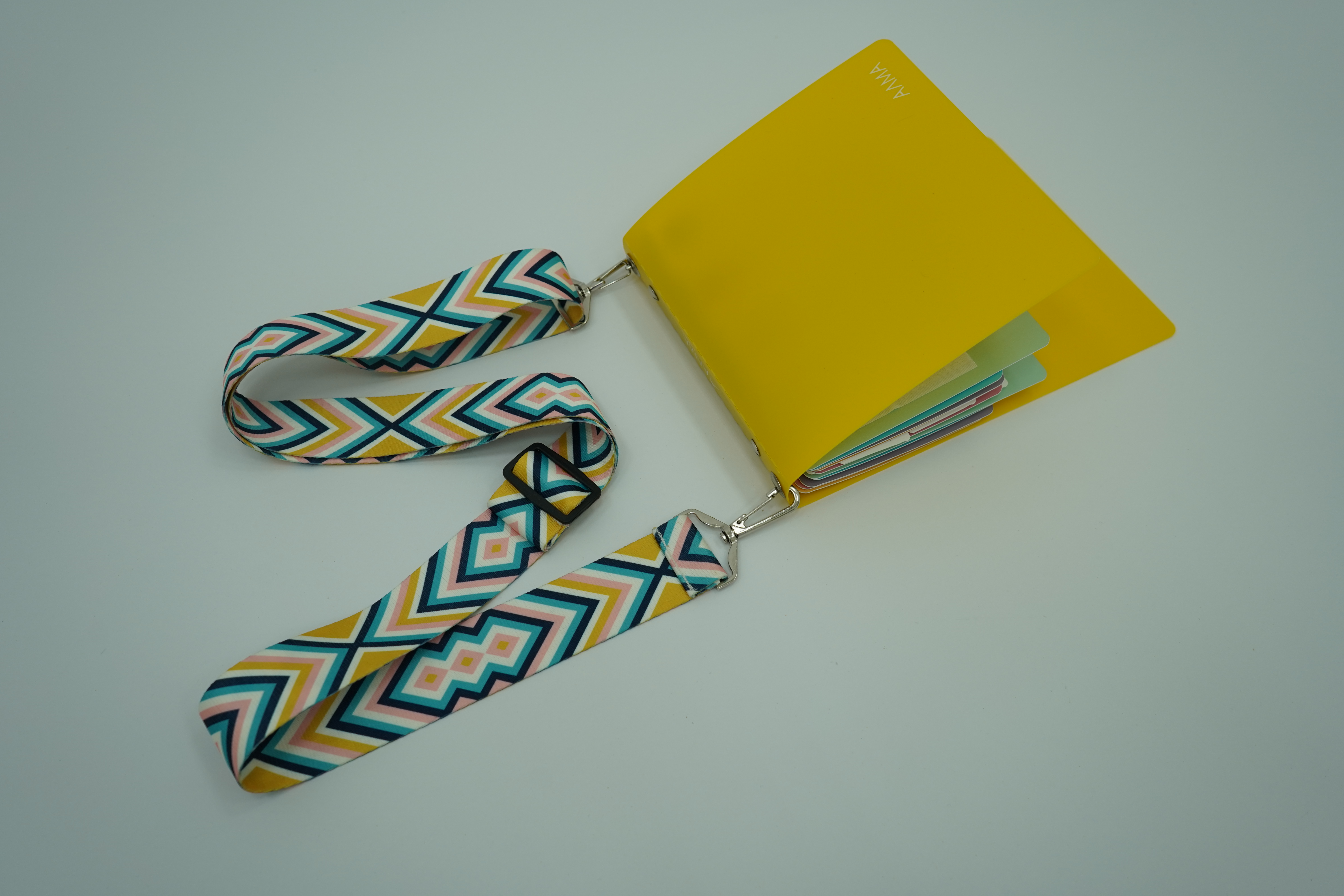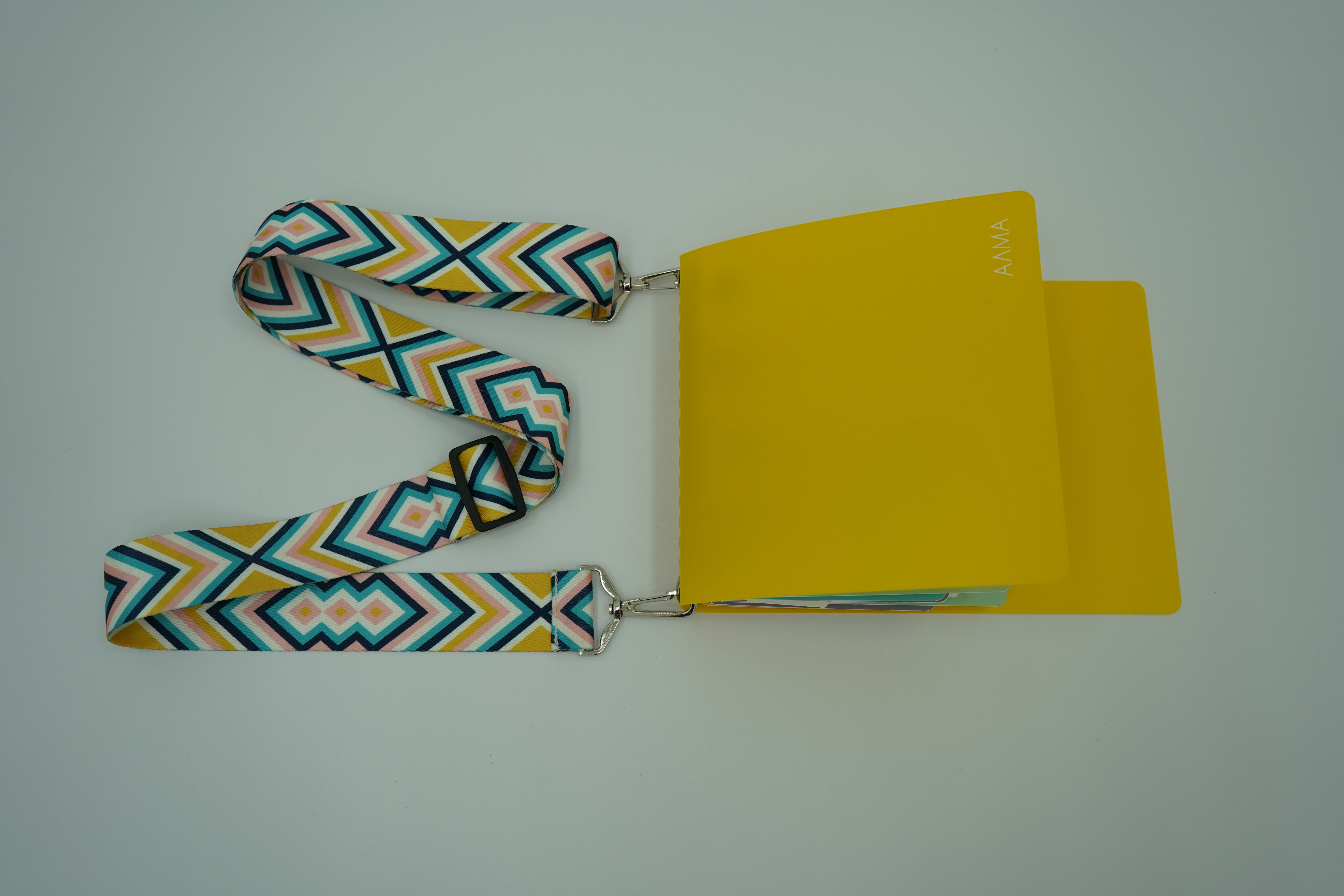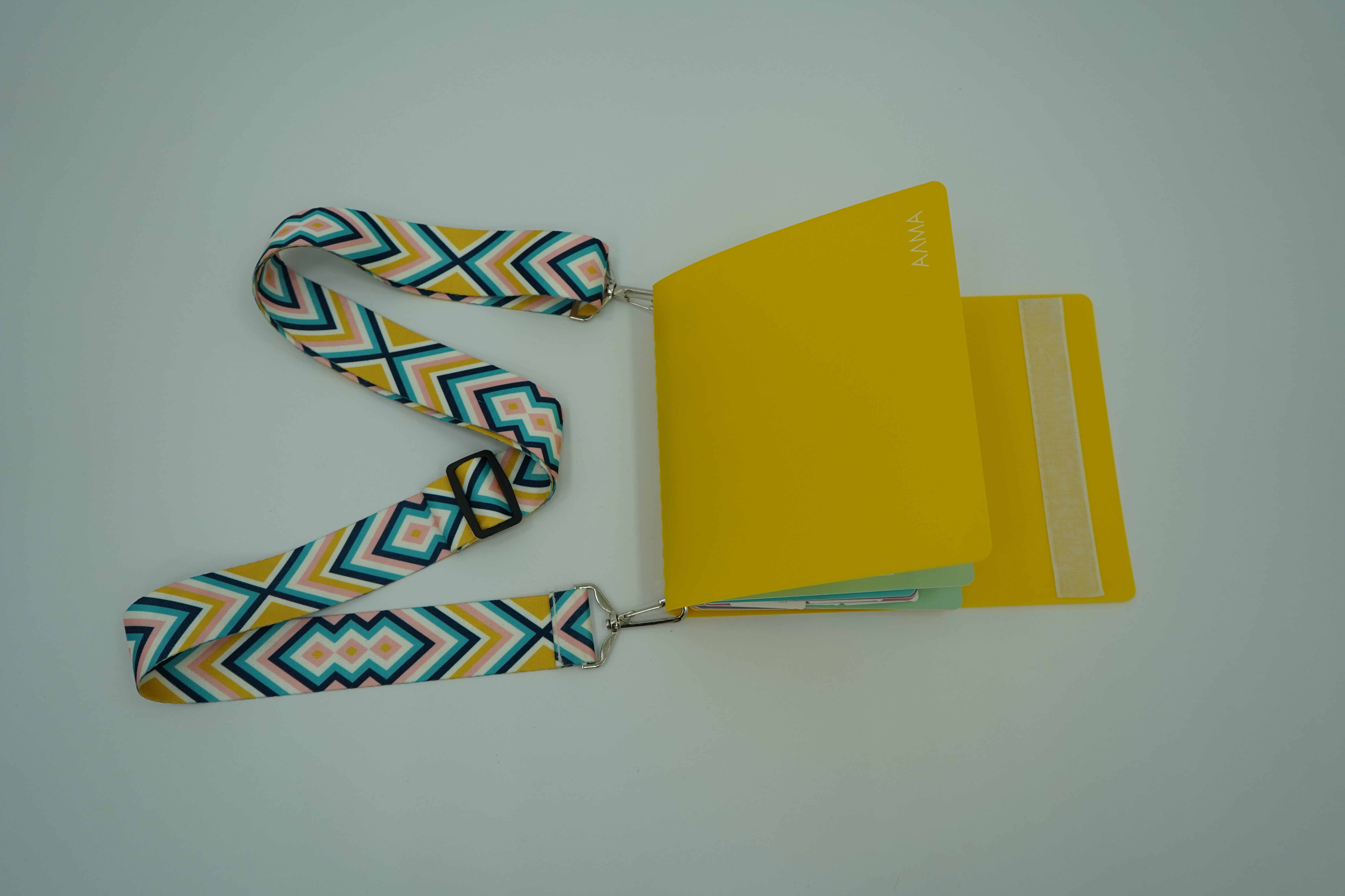Для удобства ношения есть цветной ремешок, его можно надеть на шею или повесить книгу на плечо.