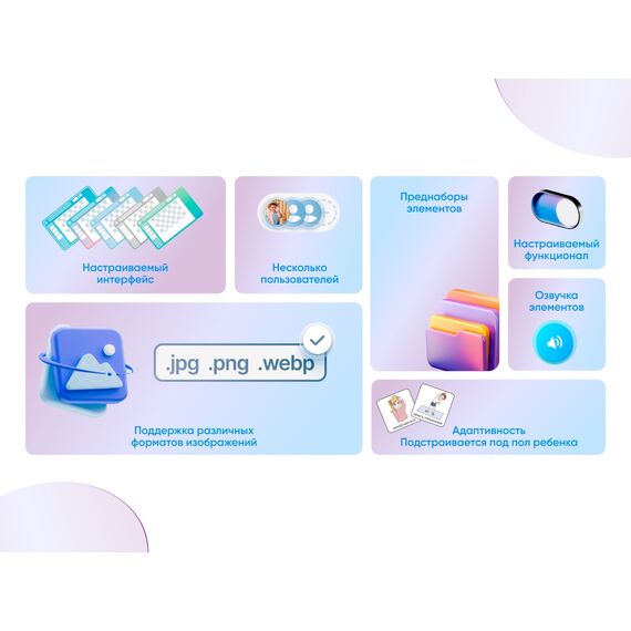 Разработан с участием экспертов в области РАС и логопедии, коррекционной психологии и педагогики. Планшет ориентируется на онтогенетические закономерности развития ребенка, учитывает структуру дефекта и адаптируется под индивидуальные особенности каждого пользователя.