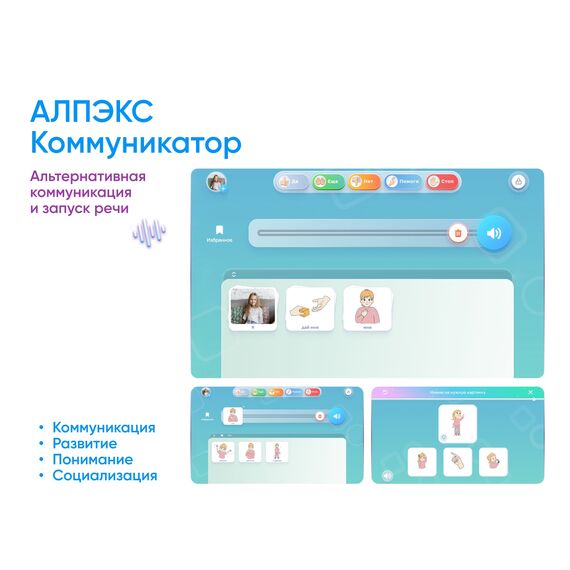 Приложение для альтернативной коммуникации и запуска речи у детей с нарушением вербального общения. Основой системы является пошаговое построение предложений с помощью карточек с фотографиями, картинками и пиктограммами, которые отображают предметы, действия, чувства и желания.