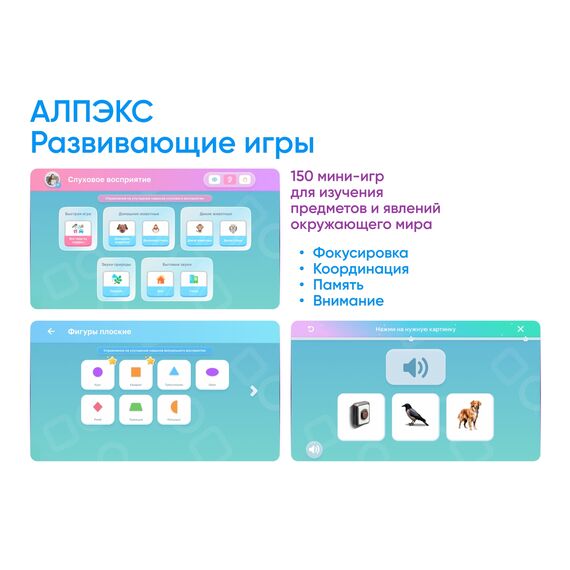 - Обучение и работа с приложениями «АЛПЭКС+» помогает ребенку адаптироваться в социуме, стать более самостоятельным и уверенным в себе.