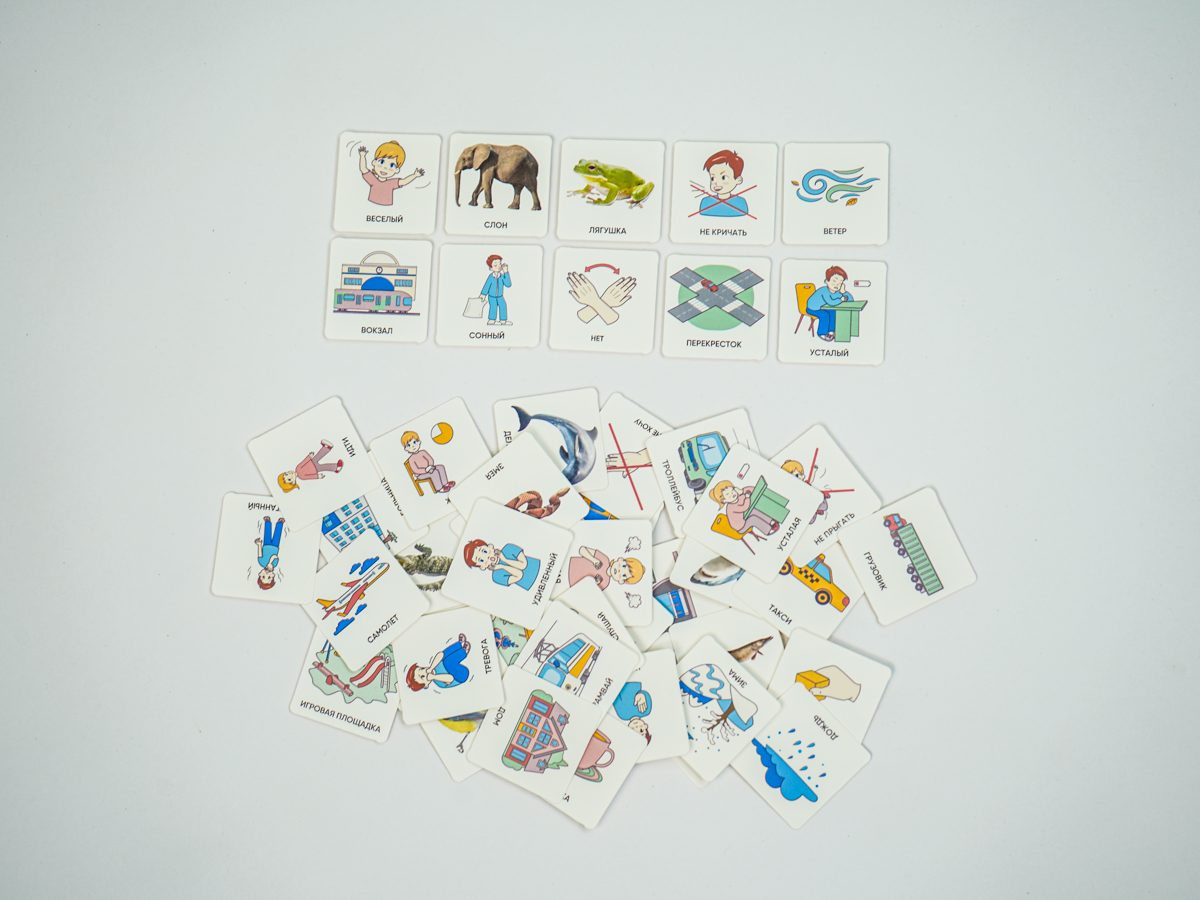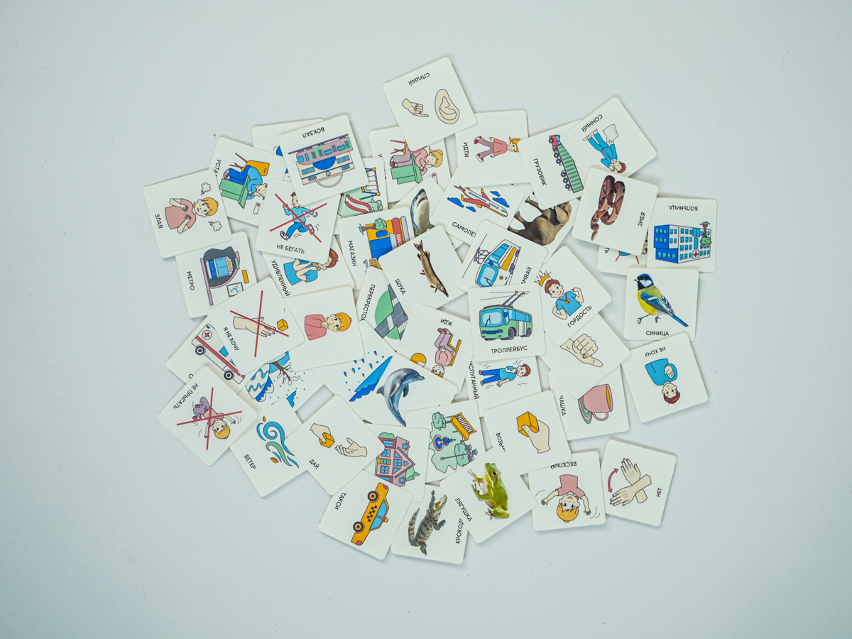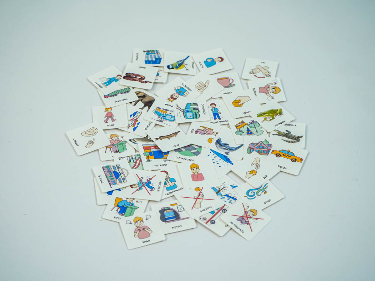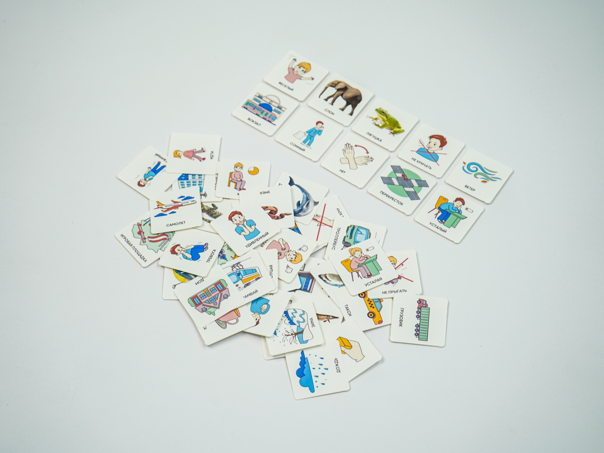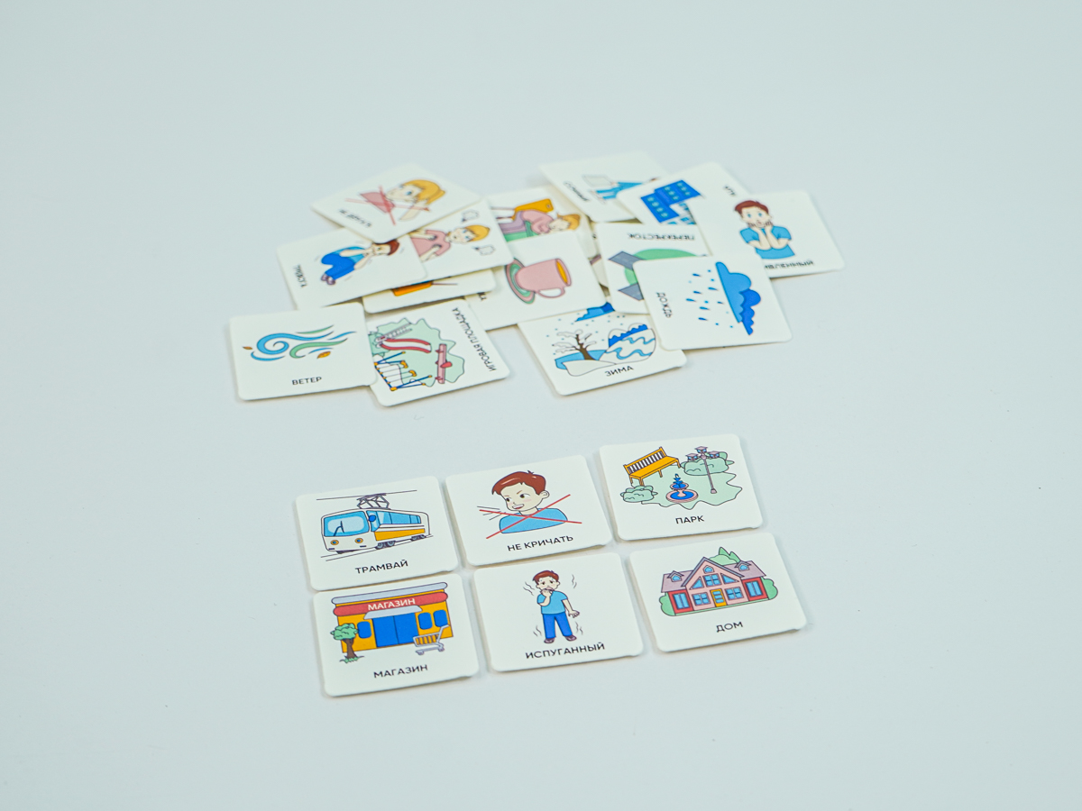 Карточки изготовлены из пластика полилит, он идеально гладкий и подходит для принтерной печати. Рисунки на карточках не стираются, их можно мыть и дезинфицировать, что особенно полезно при работе с особыми детьми. Продукция отвечает требованиям ФГОС ДО, СанПиН и критериям программы «Доступная среда».