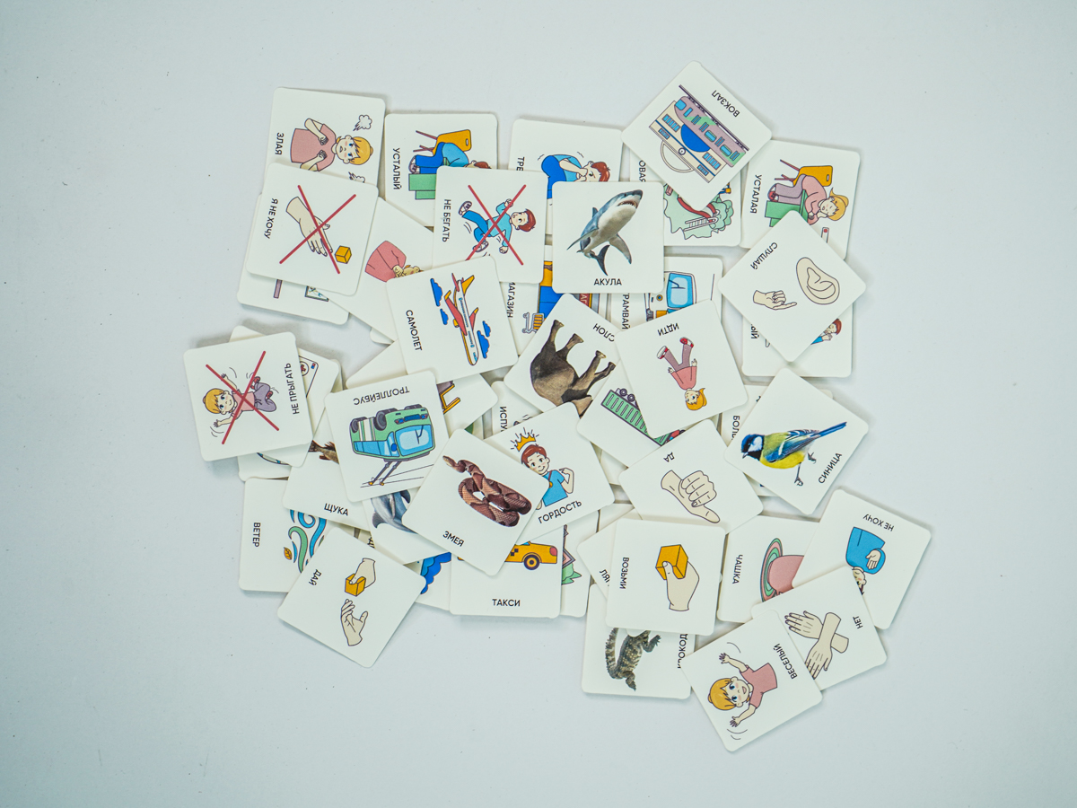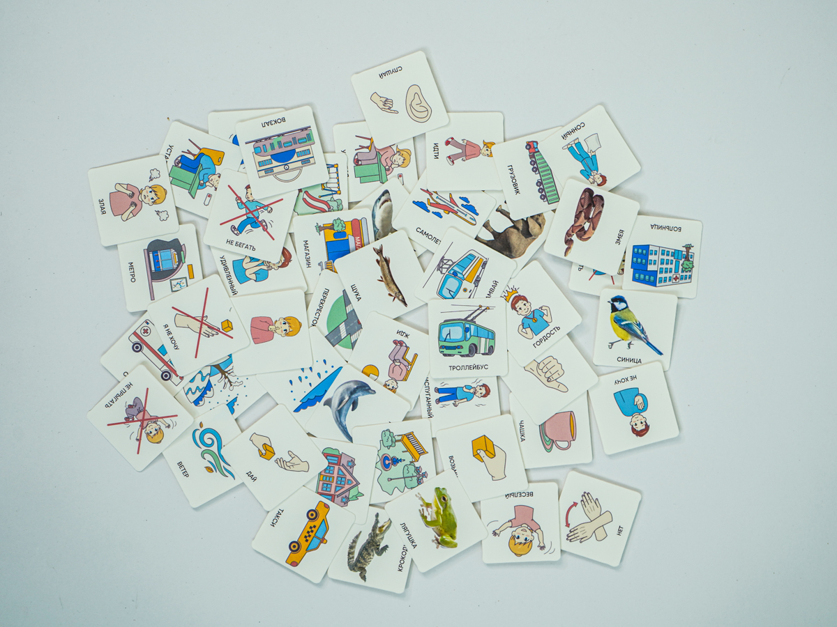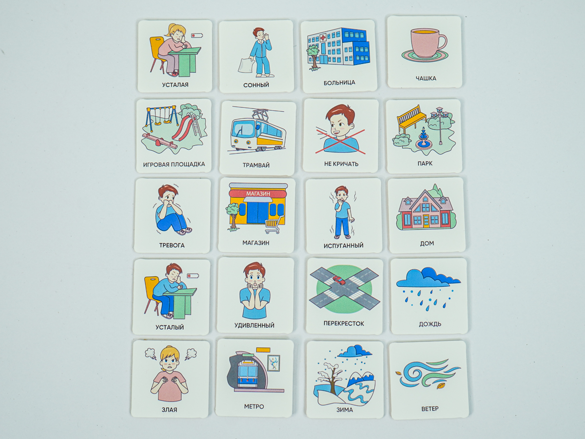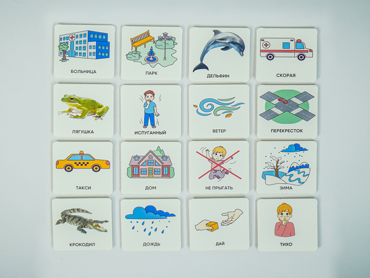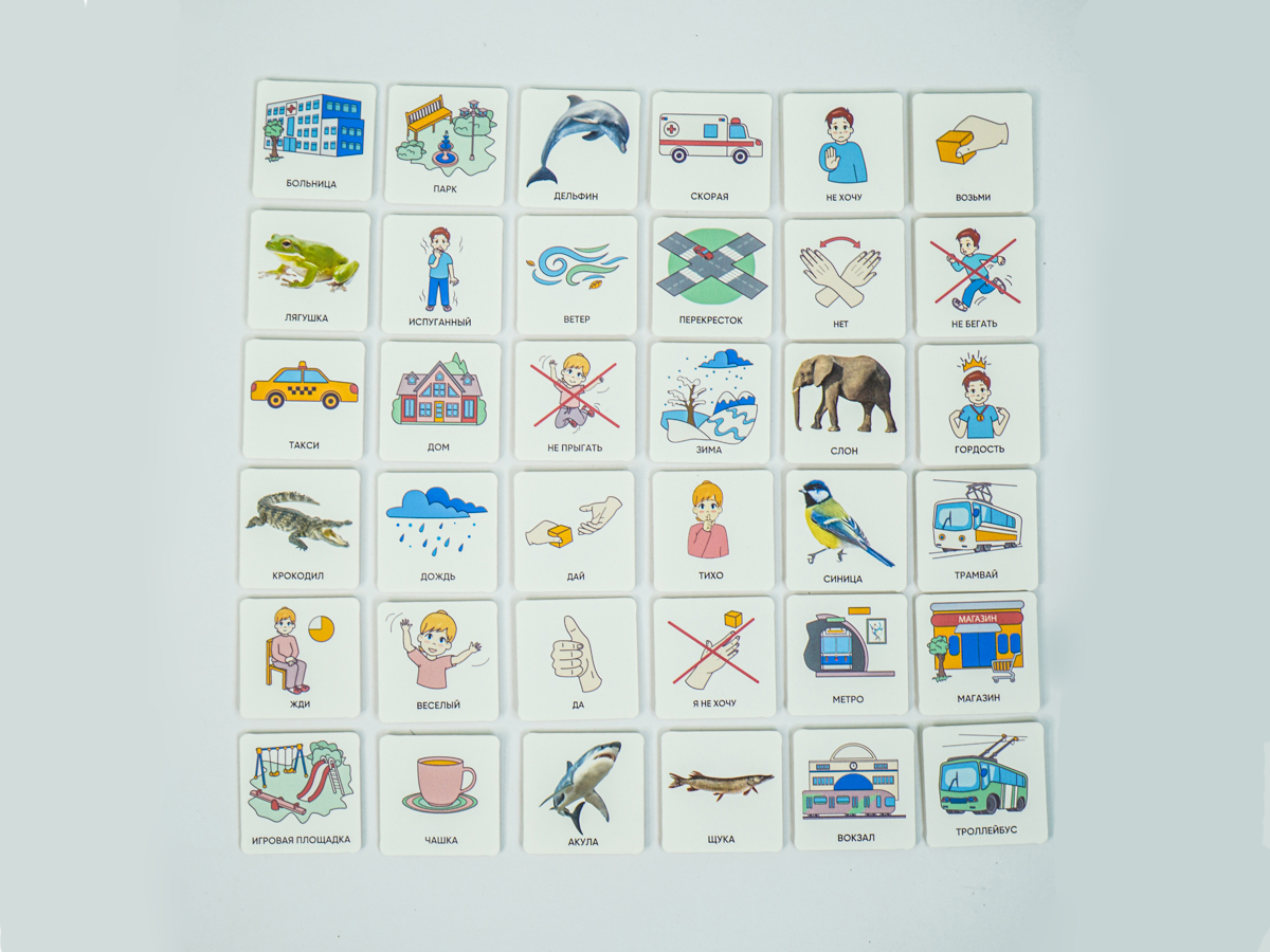 Карточки изготовлены из пластика полилит, он идеально гладкий и подходит для принтерной печати. Рисунки на карточках не стираются, их можно мыть и дезинфицировать, что особенно полезно при работе с особыми детьми. Продукция отвечает требованиям ФГОС ДО, СанПиН и критериям программы «Доступная среда».