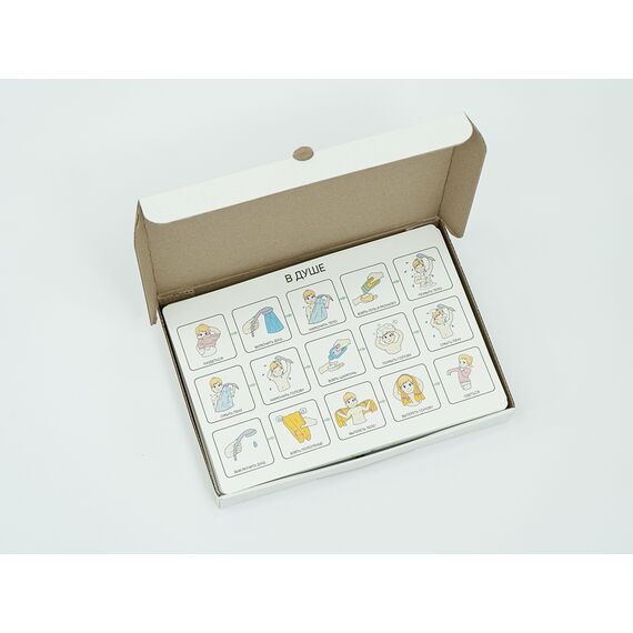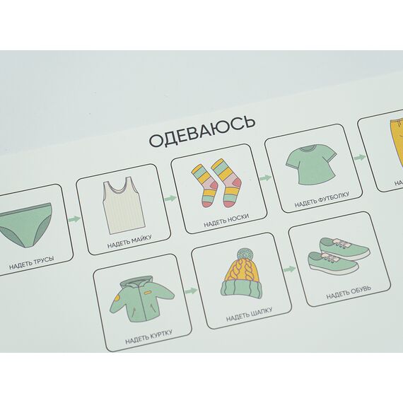 Комплект листов с картинками, позволяющими визуализировать для детей с РАС (ЗПР, УО, синдромом Дауна) последовательность ключевых событий в жизни и структурировать распорядок дня. Зрительное восприятие у детей с РАС развито лучше, чем аудиальное, поэтому визуальные опоры позволяют эффективно обучить ребёнка достижению целевого результата и убрать нежелательное поведение. Включает в себя модуль «сначала-потом», комплекты «Поведенческая цепочка», «Последовательность событий», «Таблицы выбора».