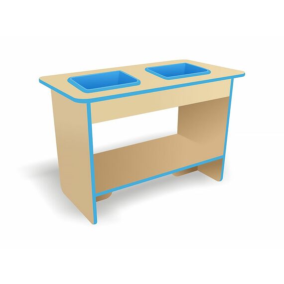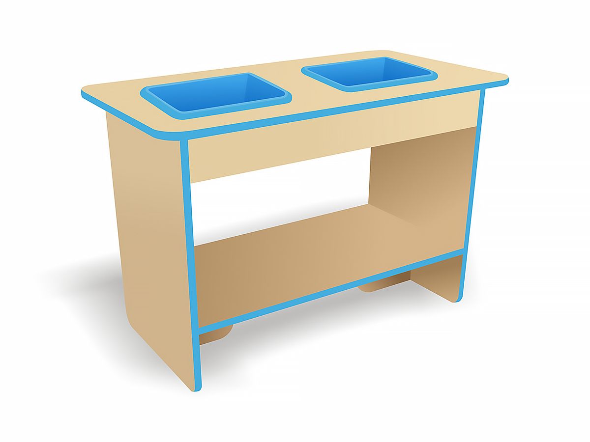 Для проведения развивающих занятий с песком или водой используется специальный стол. Предусмотрено две емкости для удобства нескольких детей, а удобная высота делает его применение удобным для детей. Рекомендуется использовать его в развивающих центрах или игровых комнатах, а также в домашних условиях.
