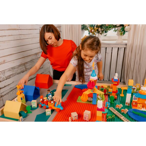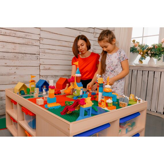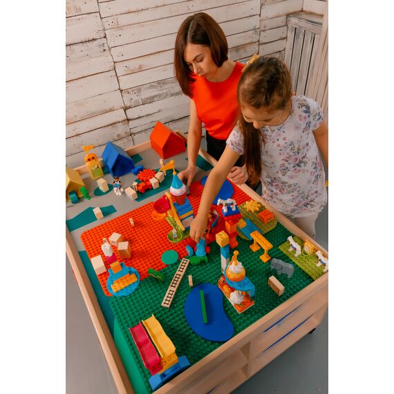 - Материал: Корпус стола - ЛДСП, Игрушки - массив натурального дерева (береза), Пластины - фанера высший сорт