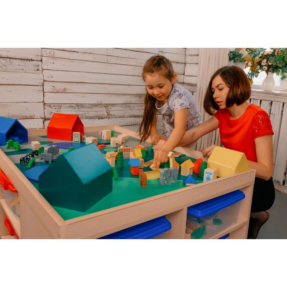 - Материал: Корпус стола - ЛДСП, Игрушки - массив натурального дерева (береза), Пластины - фанера высший сорт