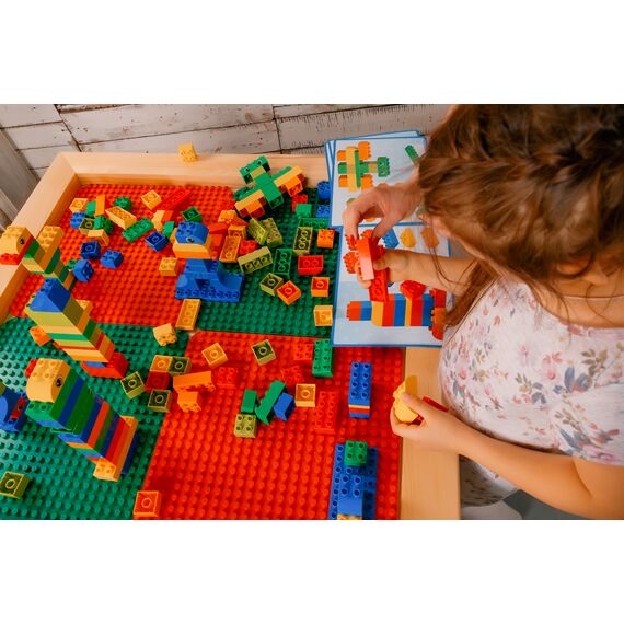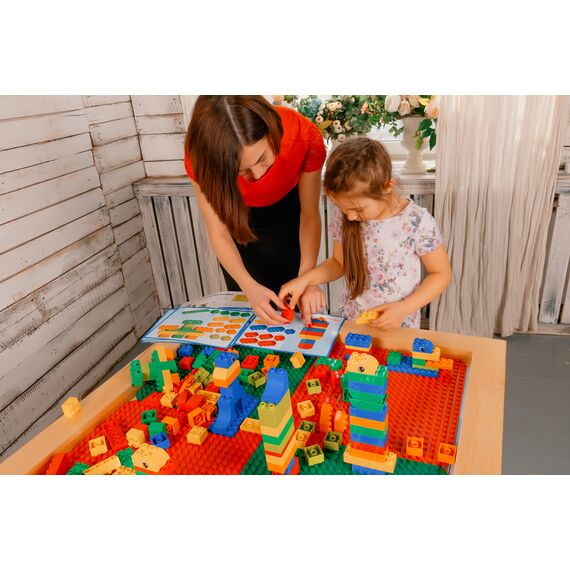 - Материал: Корпус стола - ЛДСП, Игрушки - массив натурального дерева (береза), Пластины - фанера высший сорт