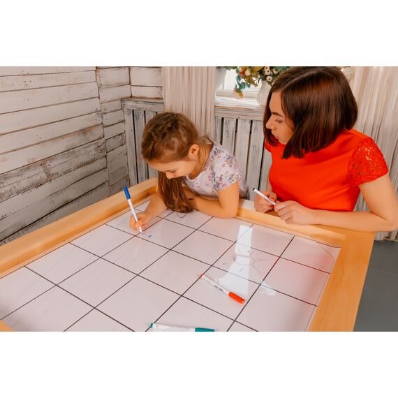 - Материал: Корпус стола - ЛДСП, Игрушки - массив натурального дерева (береза), Пластины - фанера высший сорт