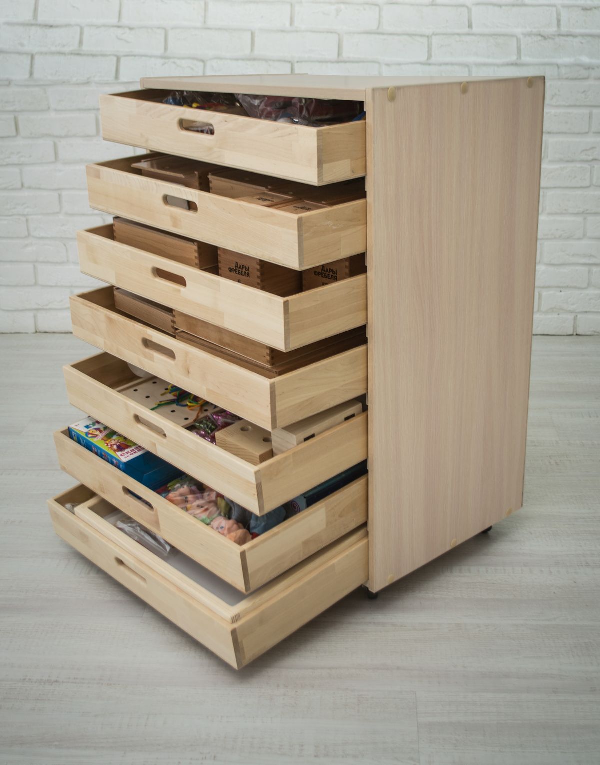 Содержимое набора удобно распределено по тематическим ящикам. Несмотря на большое количество и разнообразие материалов, их легко найти.