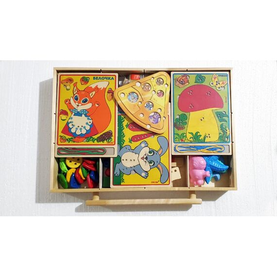 - Комплектующие и ящики из дерева аккуратно полированные и обработанные для предотвращения травмирования ребенка. Игрушки полностью безопасны для детей.