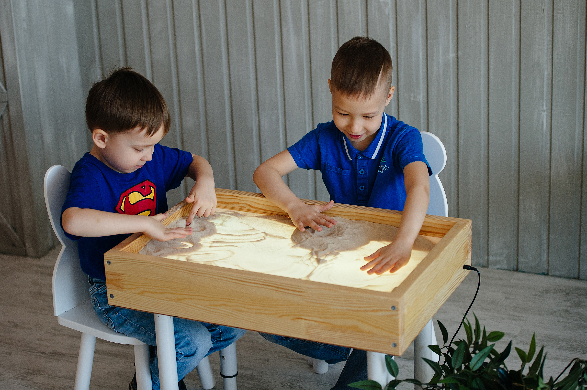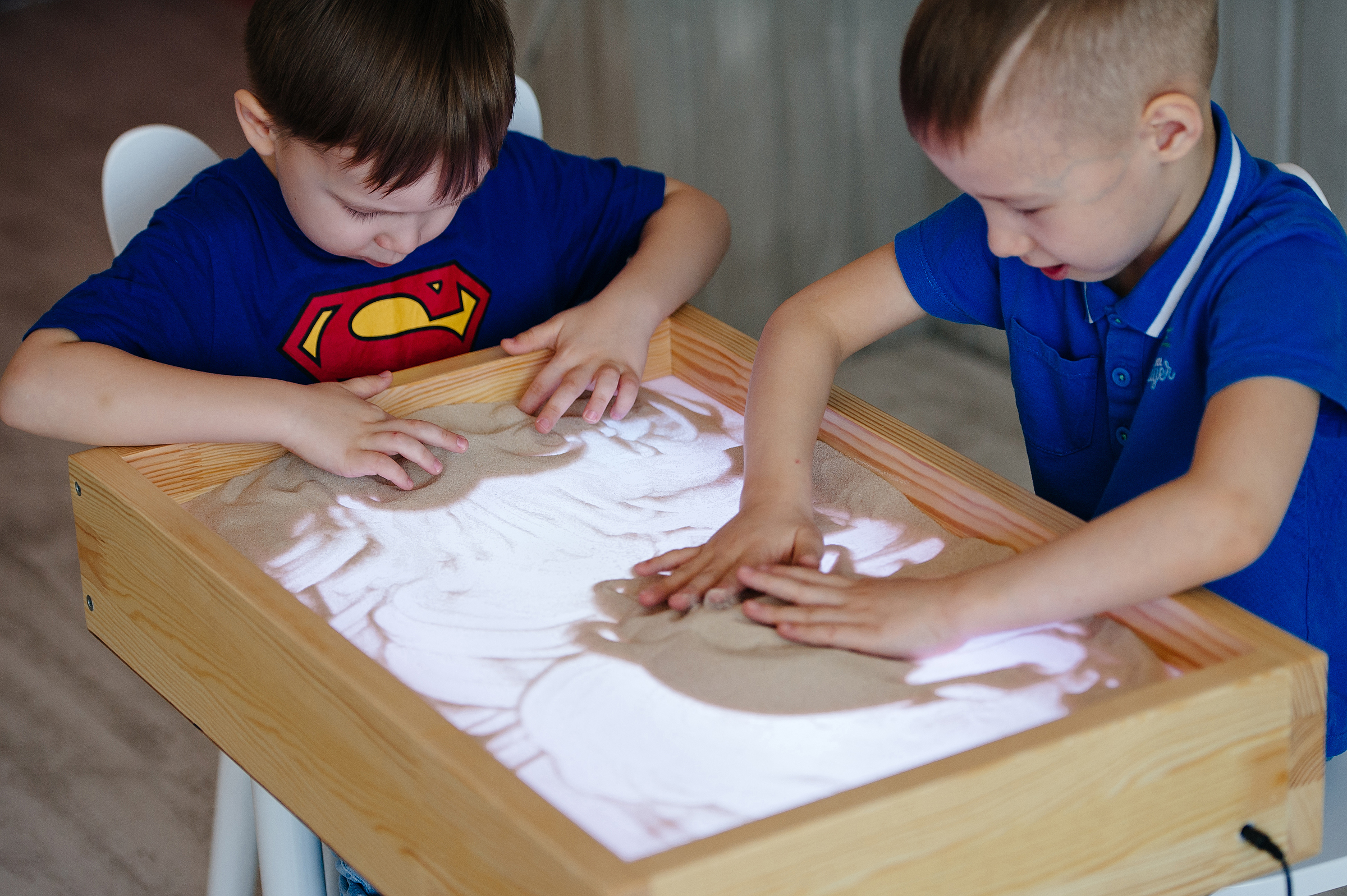 - В процессе игры дети создают собственные уникальные картинки, постоянно рассматривая изменения между переливами песка, что способствует релаксации и уменьшению стресса, в то время как различные движения рук совершенных в процессе игры, положительно влияют на моторику рук малышей, используемых в иных действиях, повышают тактильную чувствительность и способствуют развитию фантазии и креативных способностей.